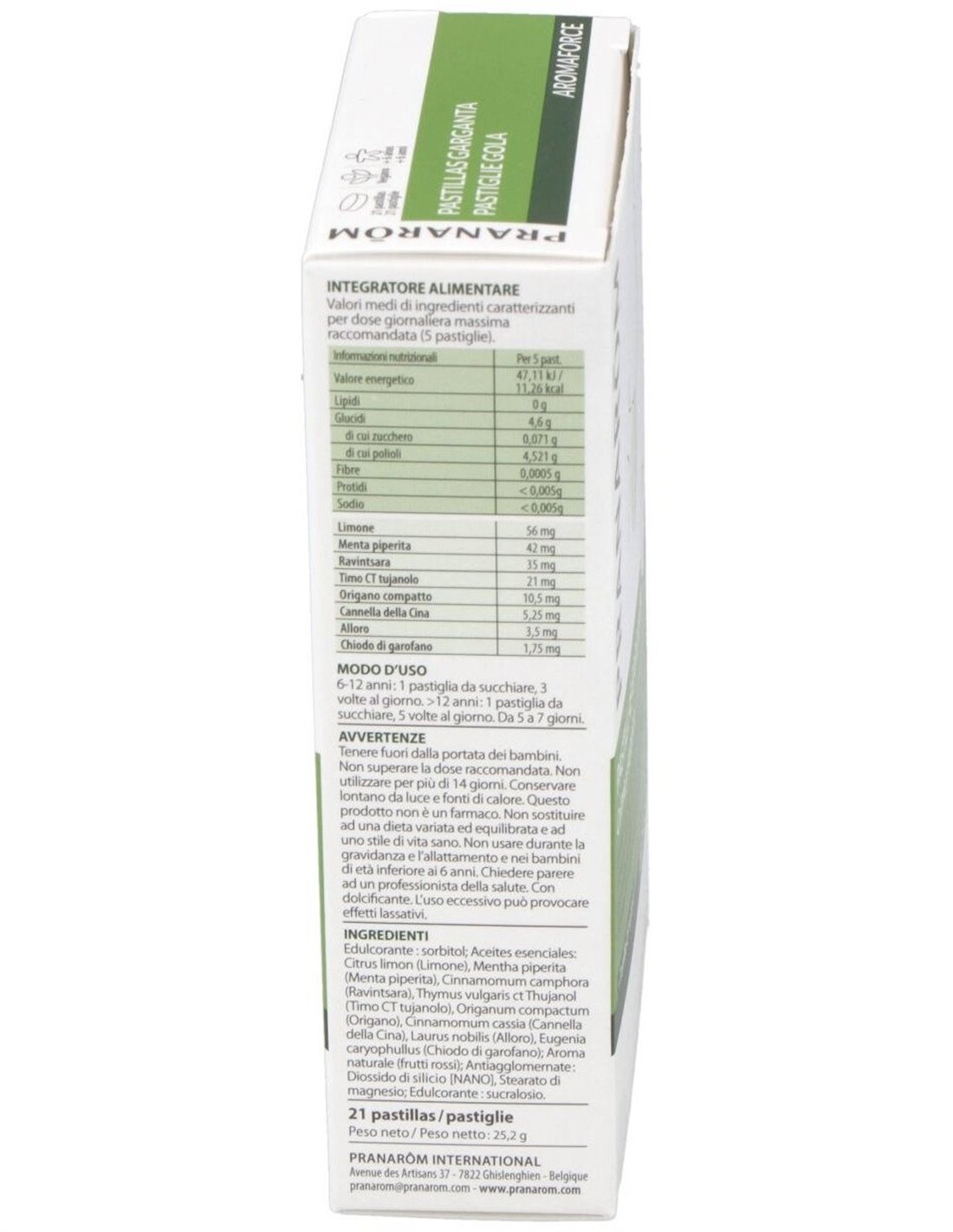 Pranarom Aromaforce Pastillas Garganta 21uds es un complemento alimenticio en formato pastillas calmantes para la garganta son unas pastillas destinadas a aliviar las molestias leves de garganta de una manera natural.