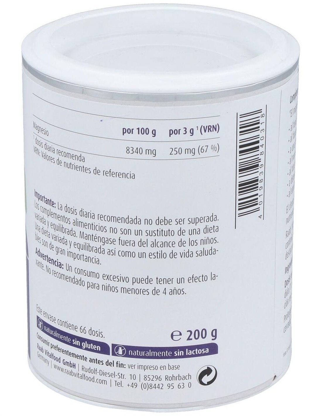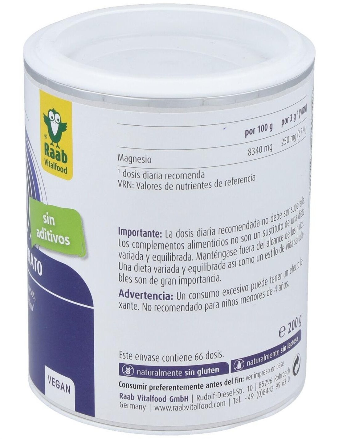 RAAB VITALFOODSuplemento a base de magnesio, un mineral que apoya el normal mantenimiento de músculos u huesos, así como el normal funcionamiento del sistema nervioso y es útil para el equilibrio electrolítico. Apto para veganos.