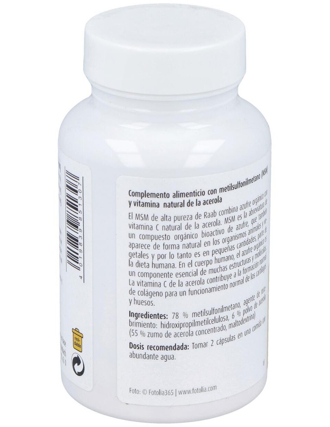 RAAB VITALFOODSuplemento dietético con metilsulfonilmetano (MSM) y vitamina C natural de acerola. Apto para veganos.