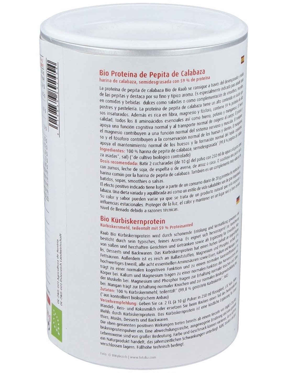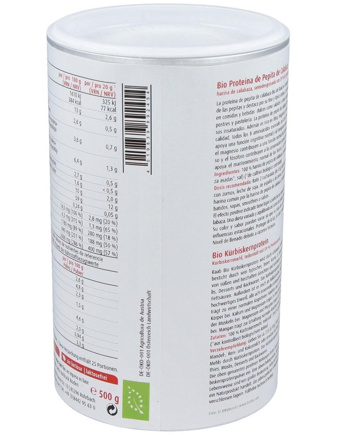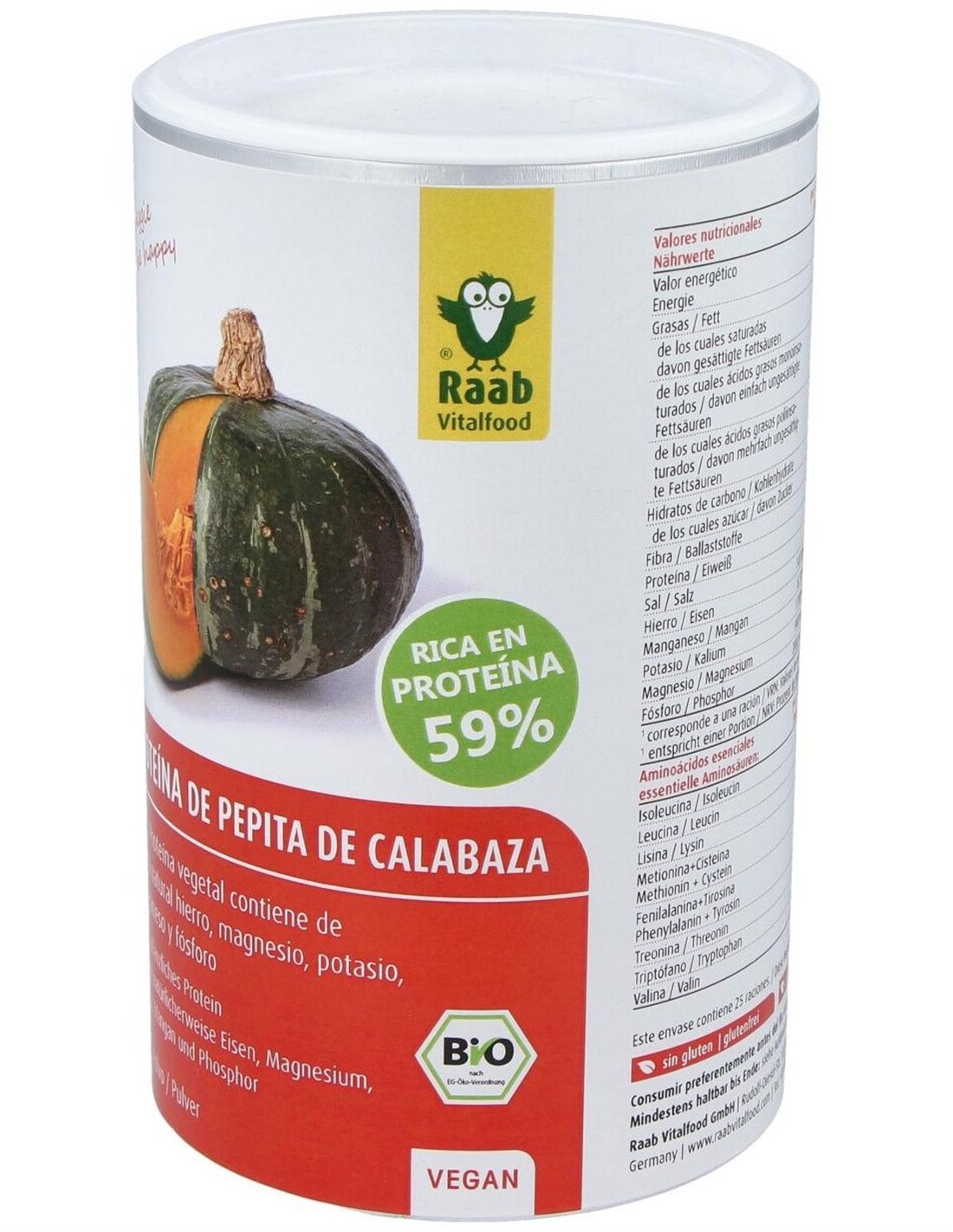 Proteína Pipa de calabaza polvo bio, bote 500g de Raab Vitalfood