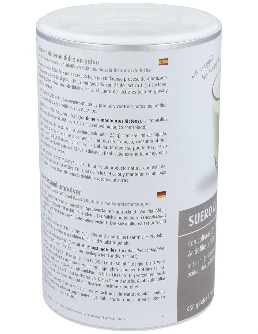 RAAB VITALFOODSuero de leche dulce secado bajo un cuidadoso proceso de atomizado. Previamente al llenado el producto es enriquecido con ácido láctico L(+) Lactobacillus Acidophilus y bacterias de Bifidus lactis.