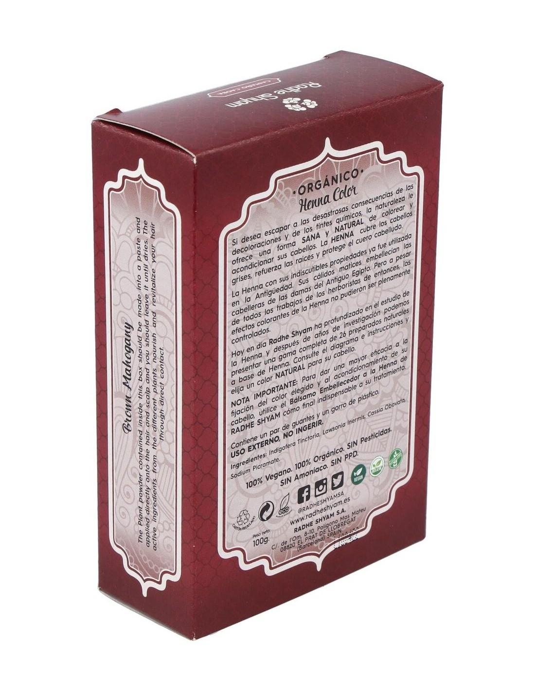 HENNA POLVO CASTAÑO CAOBA 100gr. de RADHE SHYAM