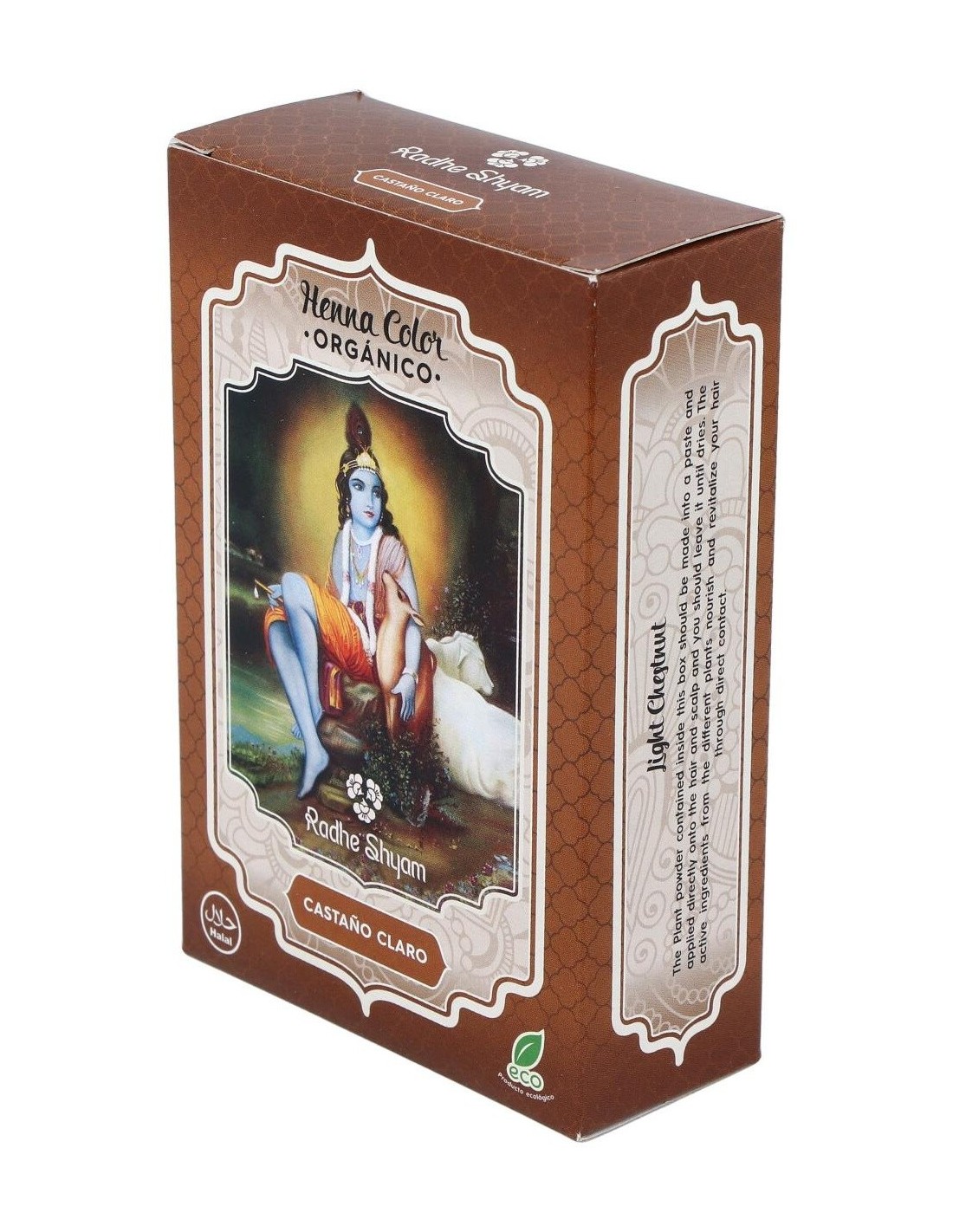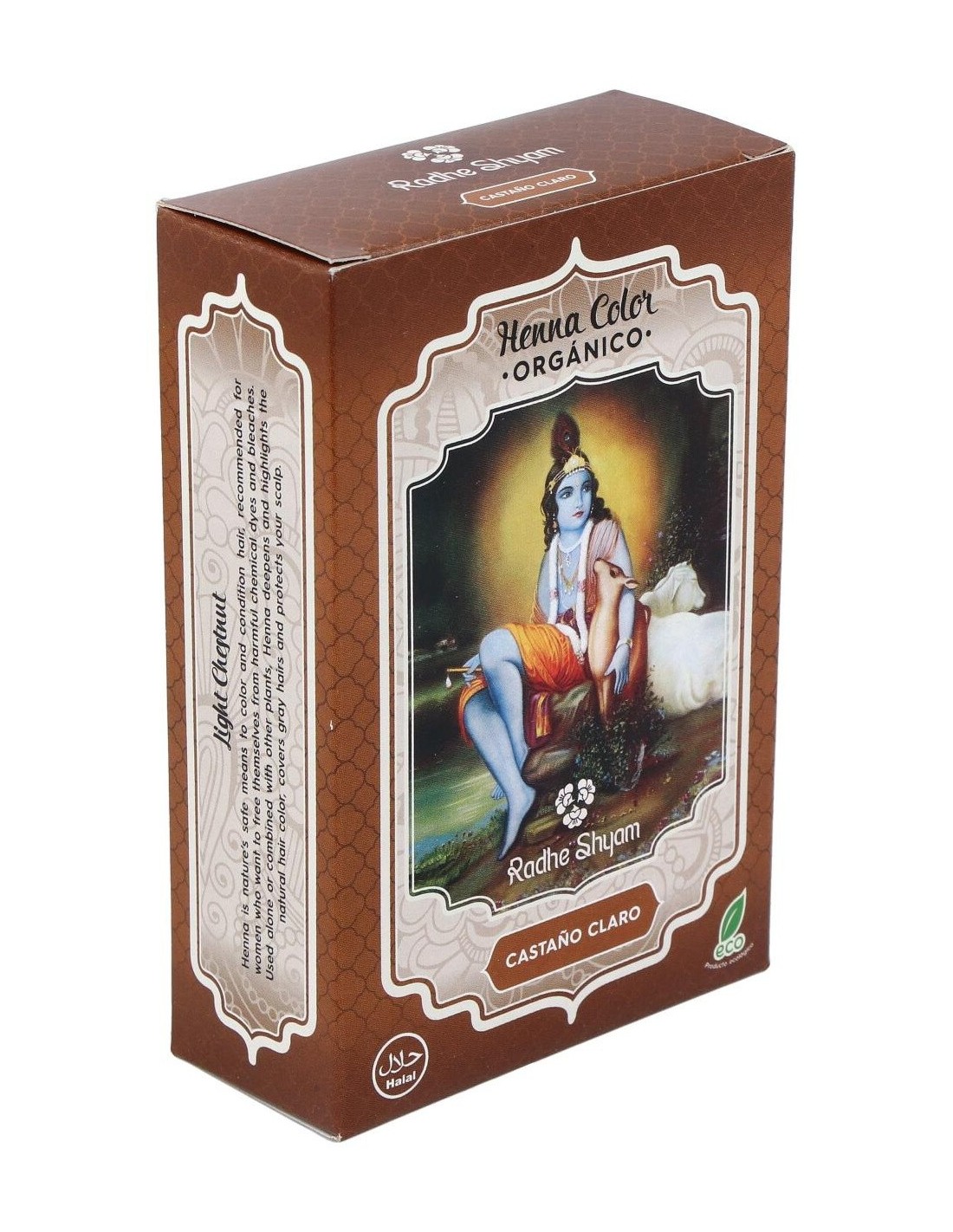 RADHE SHYAMTinte Natural para el pelo a base de plantas, que cuida y nutre la piel, del que se obtiene un color marrón clarito. Apto para veganos.