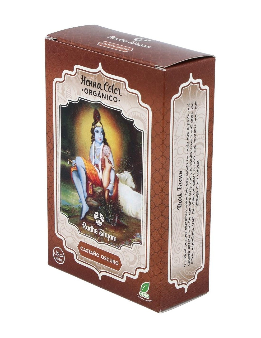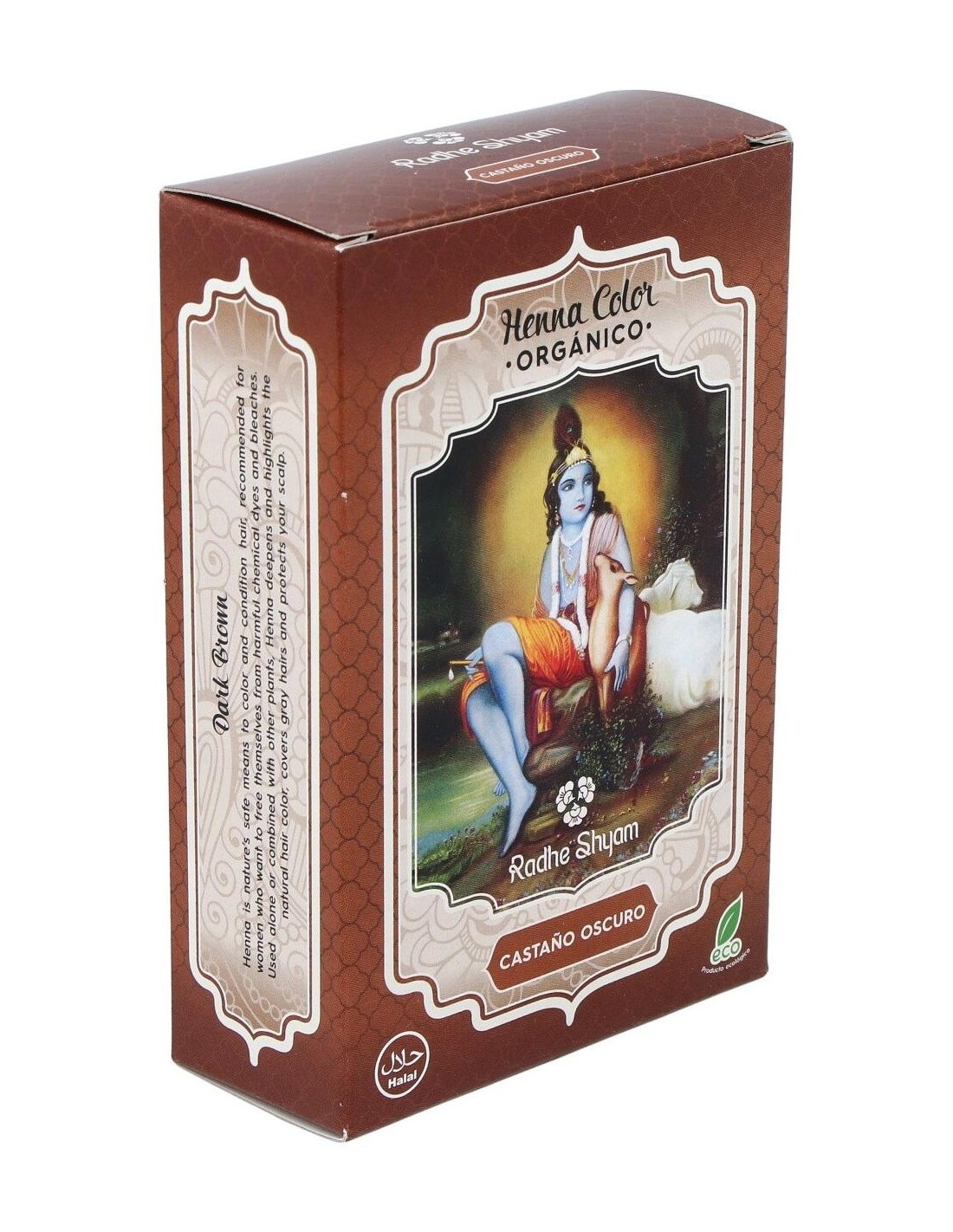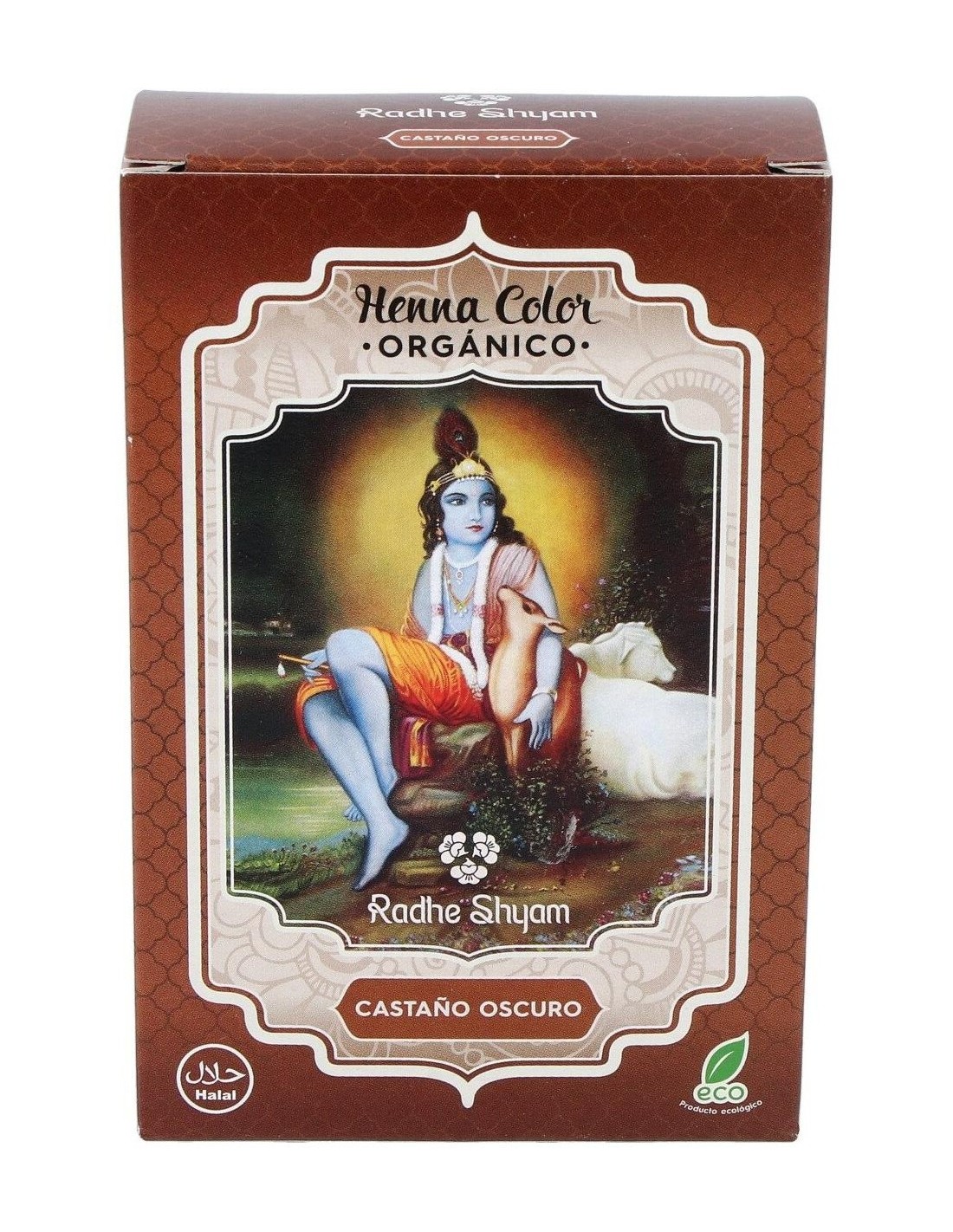 RADHE SHYAMTinte Natural para el pelo a base de plantas, que cuida y nutre la piel, del que se obtiene un color marrón oscuro. HENNA POLVO CASTAÑO OSCURO 100gr.