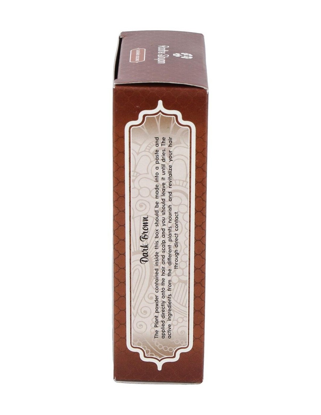 Tinte Natural para el pelo a base de plantas, que cuida y nutre la piel, del que se obtiene un color marrón oscuro.