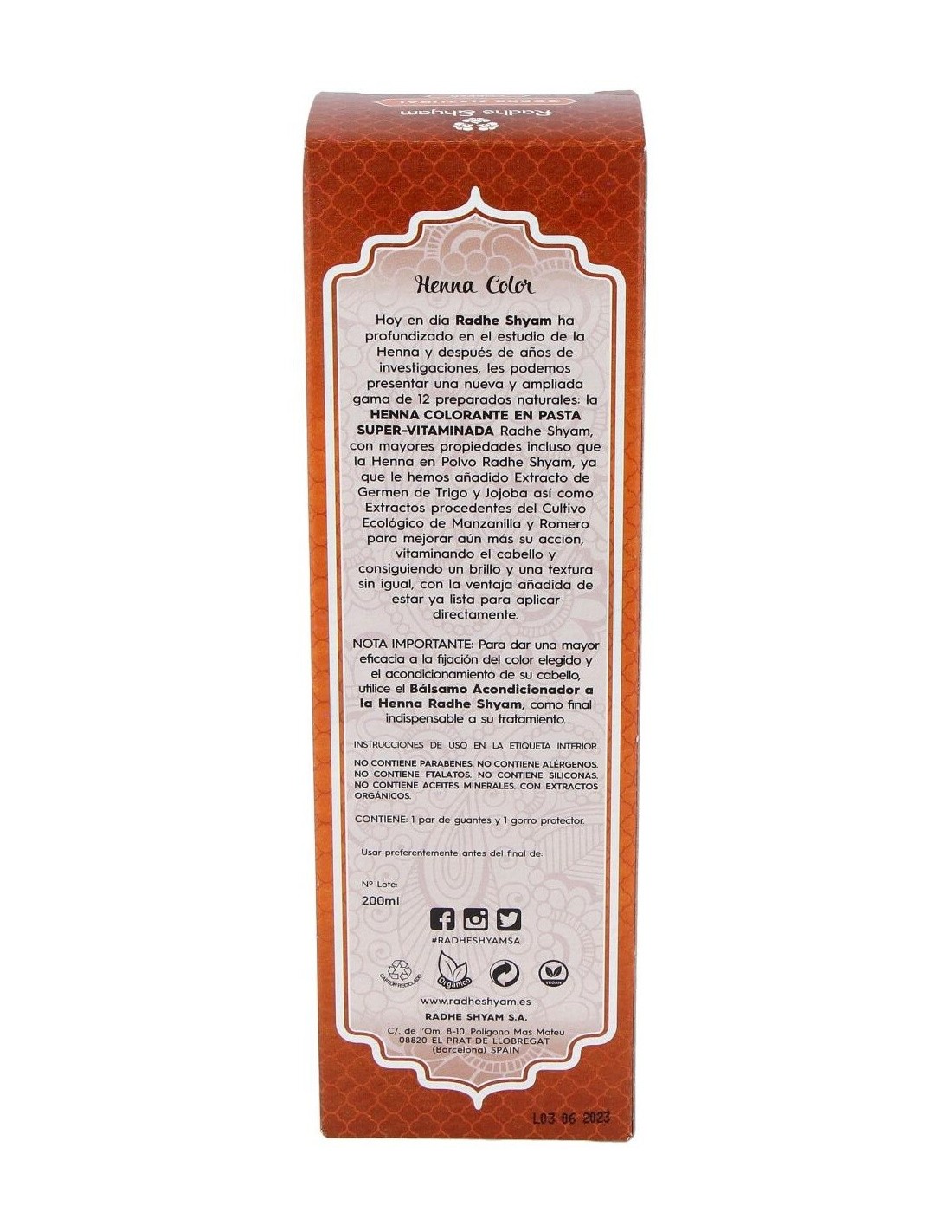 HENNA PASTA COBRE NATURAL 200gr. de RADHE SHYAM