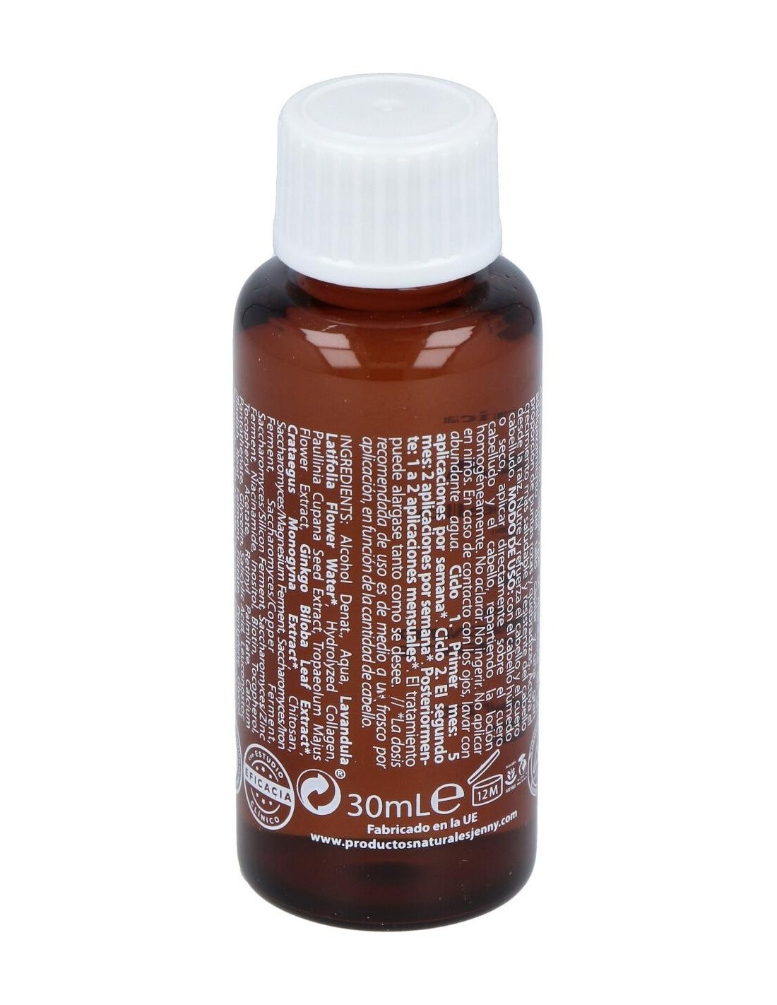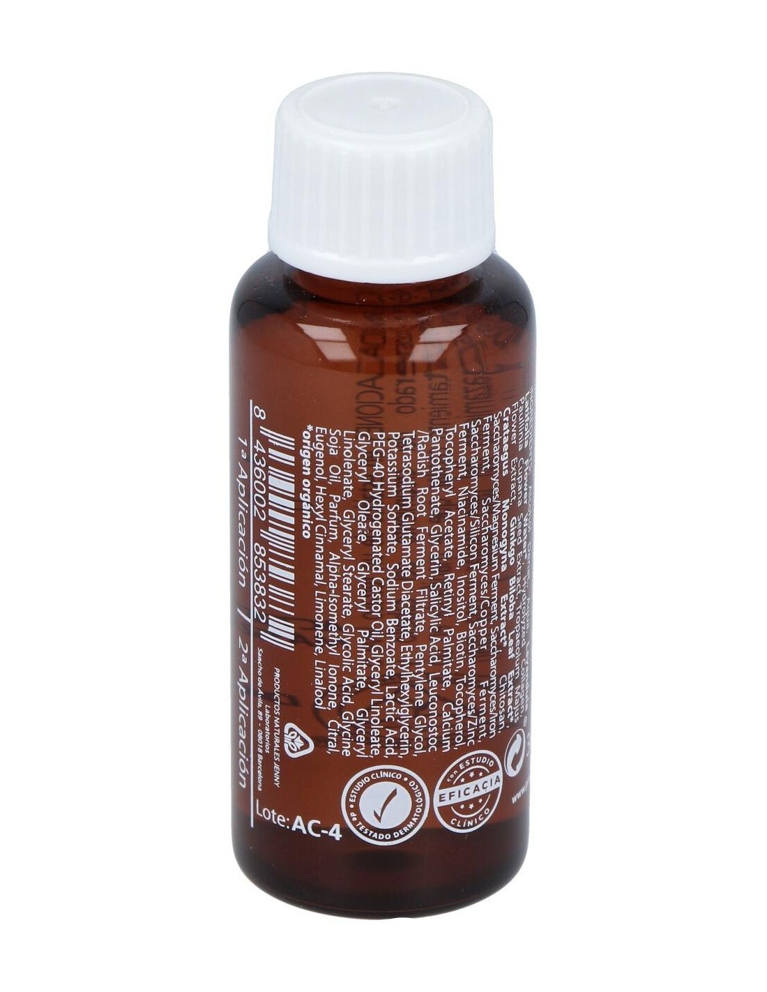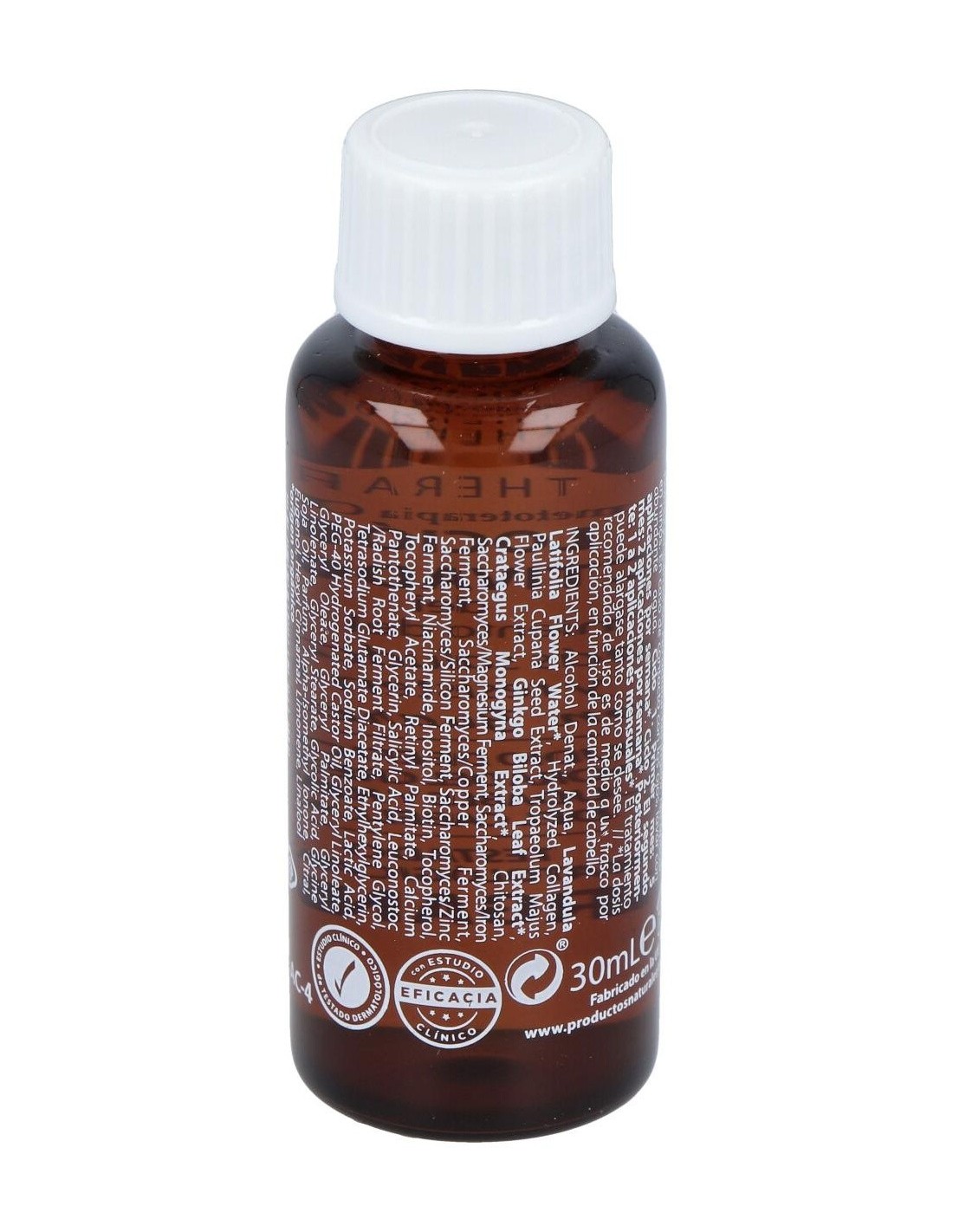 Complejo vitamínico (niacinamida, vitaminas A, E y F). Extracto de Capuchina. Extracto de Espino blanco, extracto de Ginkgo biloba, destilado de Lavanda, Complejo Reparador Mineral, Chitosán, Complejo de Proteínas, otros.