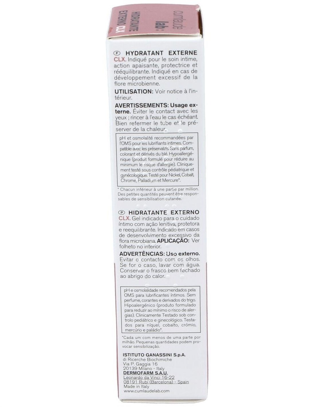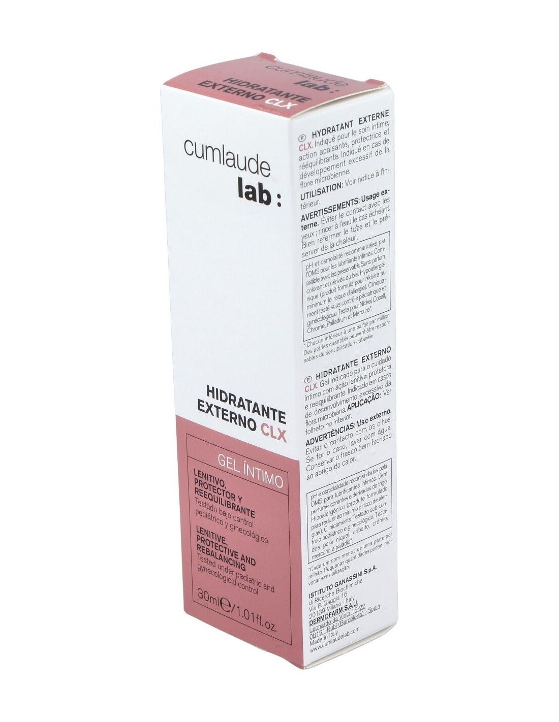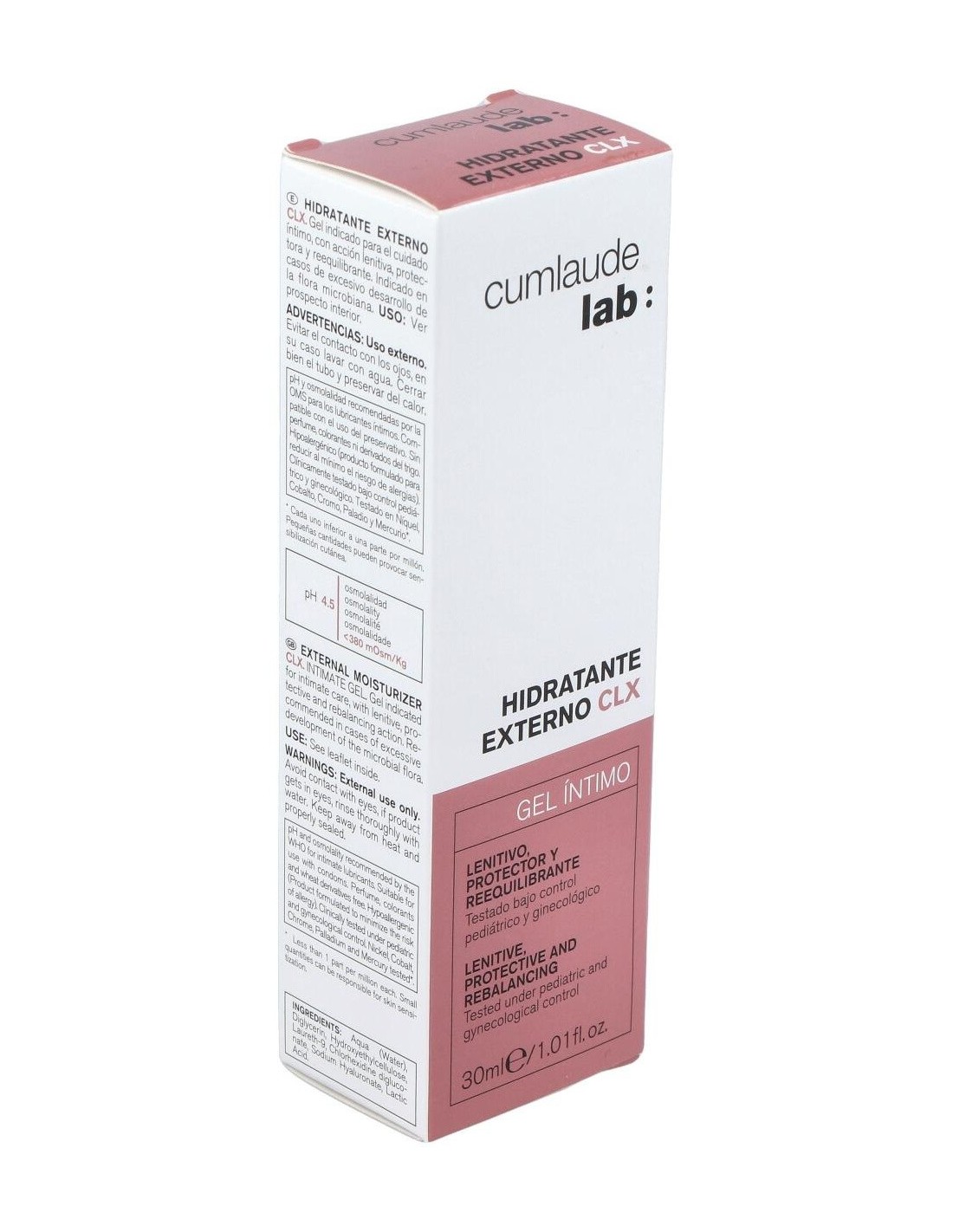 RILASTILCumlaude | Cumlaude hidratante externo CLX 30mlCumlaude hidratante externo CLX 30ml es un gel hidratante formulado con clorhexidina con pH6 especialmente indicado para el cuidado íntimo de la zona externa de la vagina.Además, posee una acción calmante, protectora y reequilibrante, especialmente para casos de excesivo desarrollo de flora vaginal, picores, olores desagradables, irritaciones, etc.