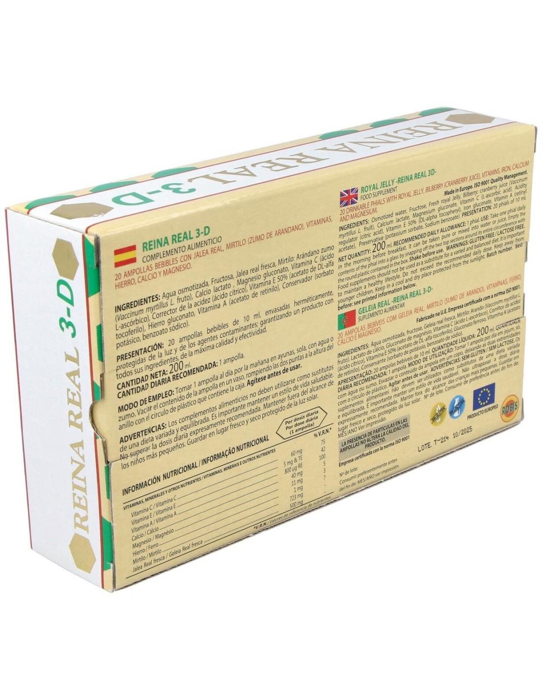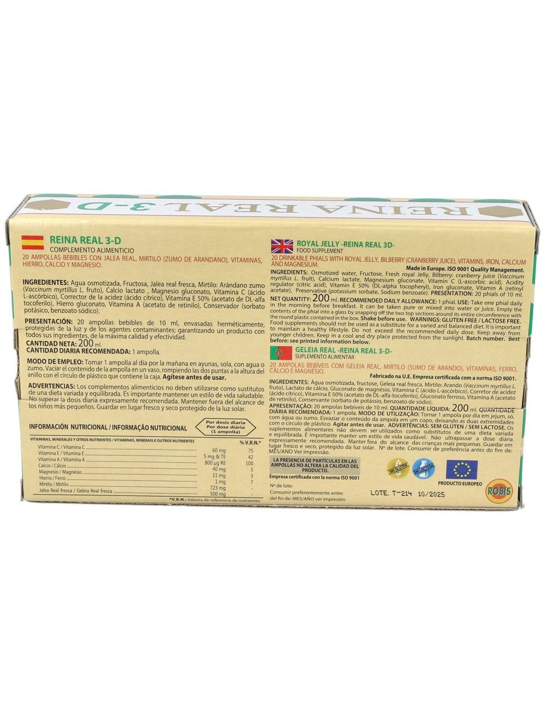ROBISEl Reina Real 3 Edad 20Amp de Robis es un suplemento nutricional dirigido a personas que buscan apoyo en su bienestar general, formulado para contribuir al equilibrio y vitalidad en diferentes etapas de la vida.
