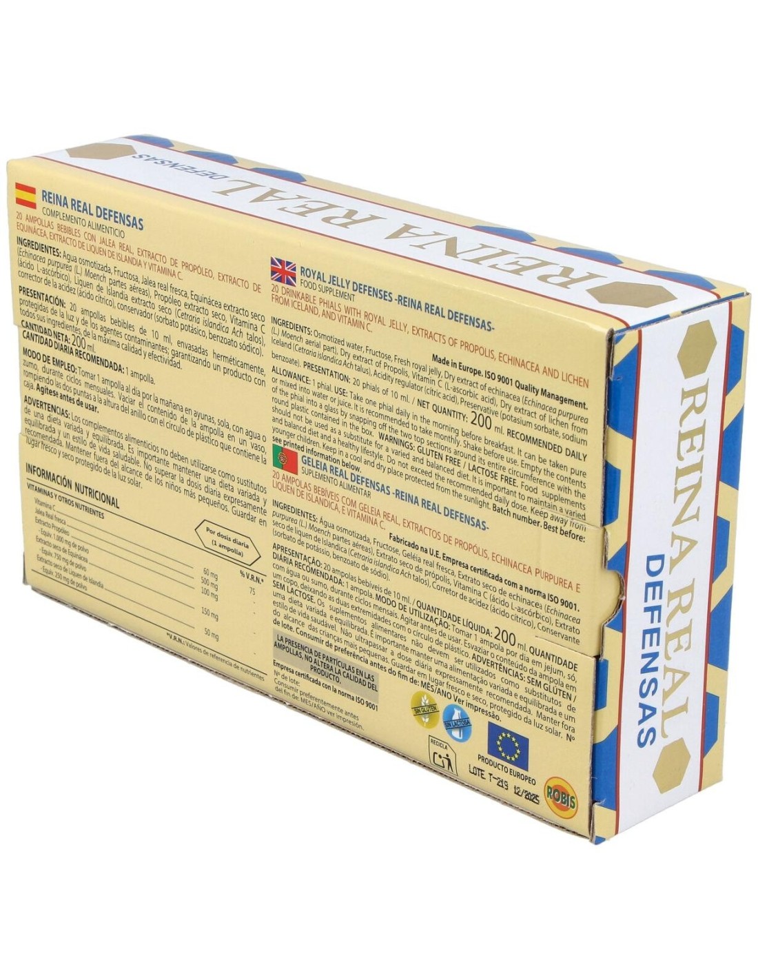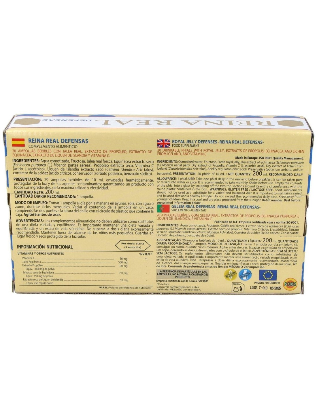 ROBISReina Real Defensas 20Amp. de Robis es un suplemento diseñado para personas que buscan apoyar su sistema inmunológico, ofreciendo un aporte equilibrado de nutrientes esenciales para fortalecer las defensas naturales del cuerpo.