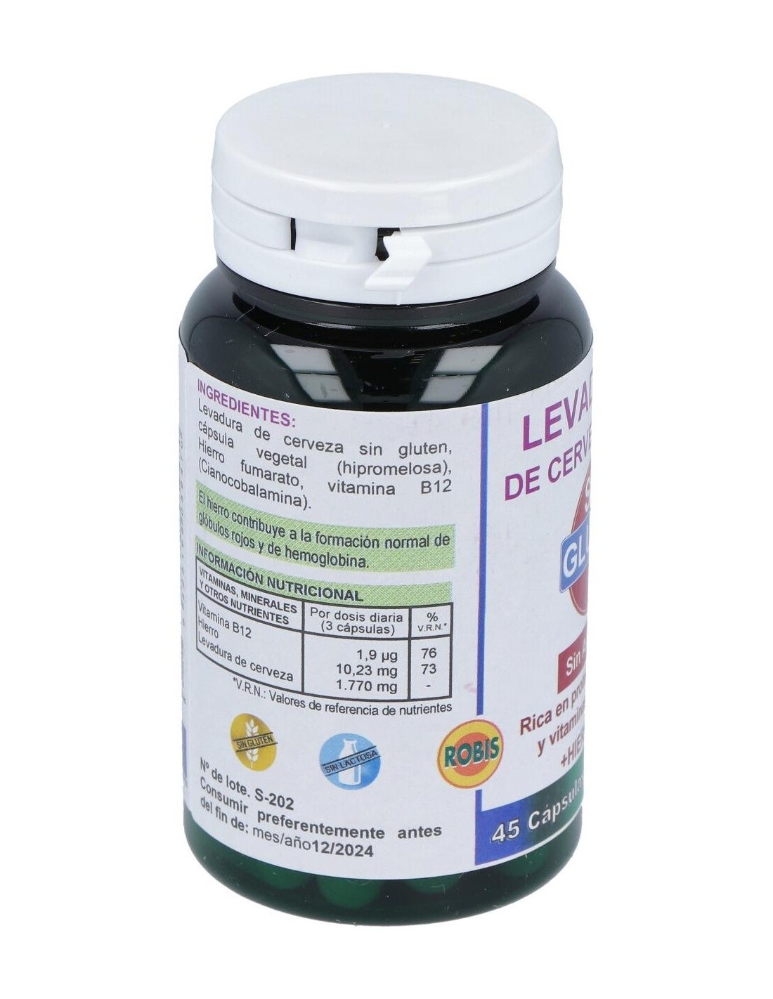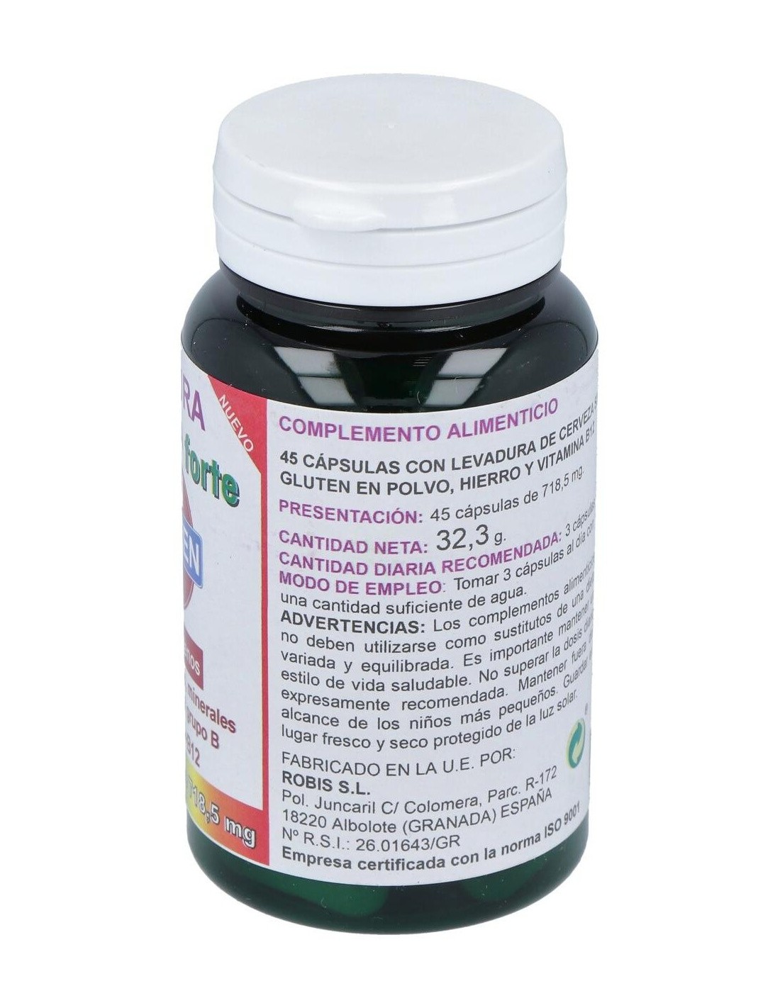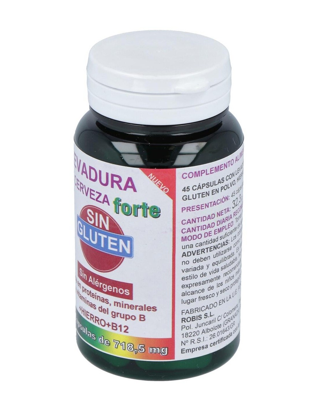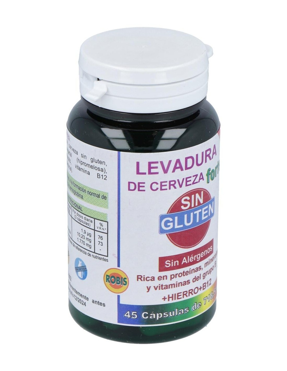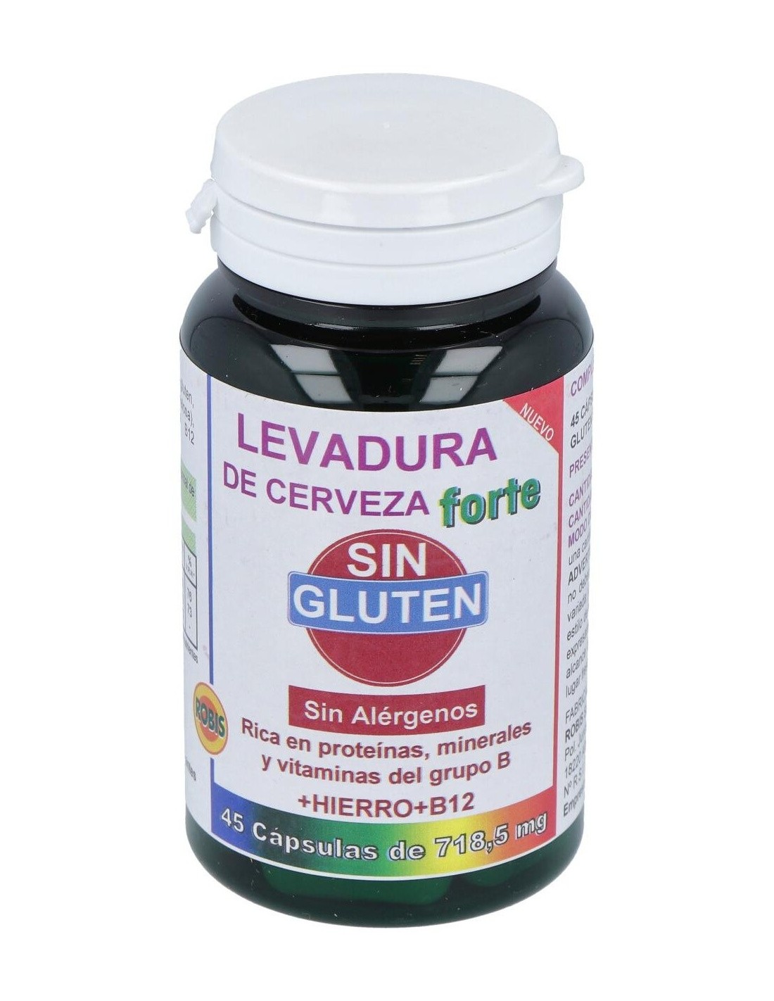 ROBISLa Levadura De Cerveza Forte Sin Gluten 45Cap. de Robis es un suplemento para personas con dietas sin gluten, que aporta nutrientes esenciales mediante una fórmula libre de gluten, facilitando su integración en hábitos alimenticios específicos.