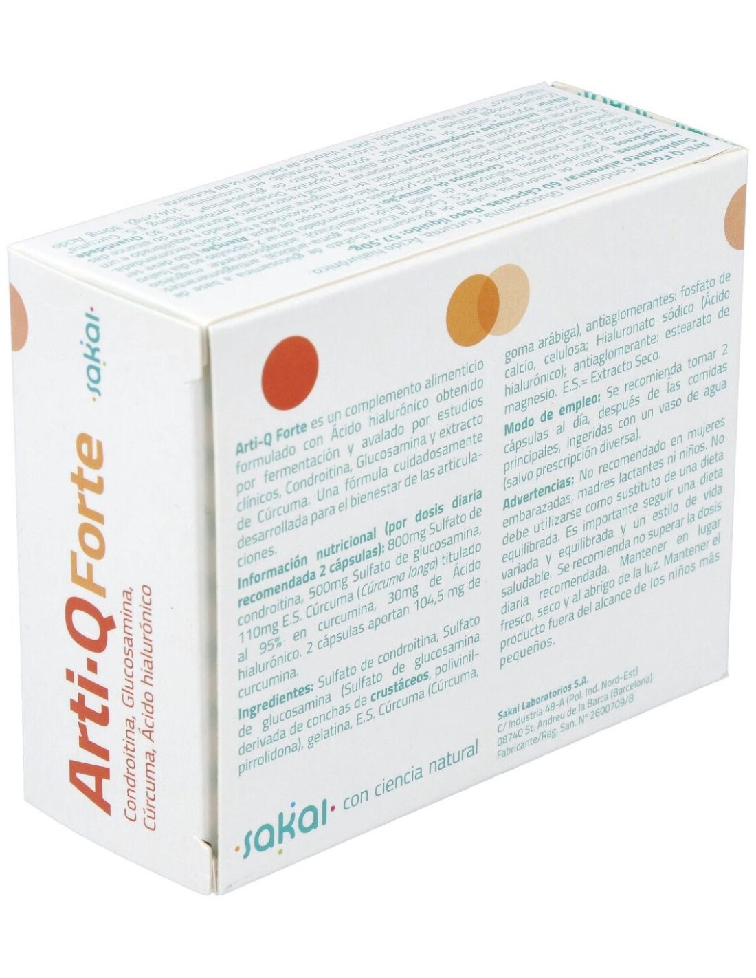 SAKAISakai Arti-Q Forte 60 Cápsulas es un complemento alimenticio a base de condroitina, glucosamina, cúrcuma, ácido hialurónico que contribuye a aumentar la movilidad articular y disminuye las molestias de las articulaciones. Consejo FarmacéuticoLa cúrcuma es una raíz usada en polvo que pertenece a la familia del jengibre.