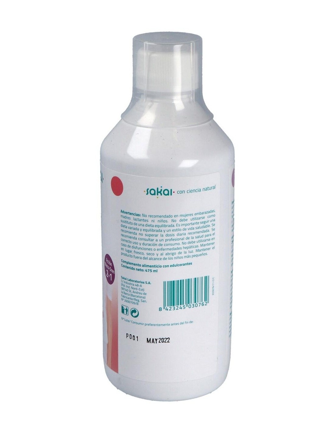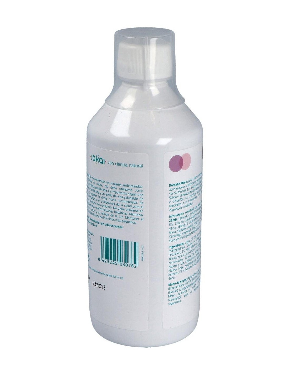 SAKAIEl Drenabe Femme 475Ml. de Sakai es un suplemento dirigido a mujeres que ayuda a apoyar el bienestar diario mediante una fórmula equilibrada diseñada para favorecer la hidratación y el equilibrio corporal.