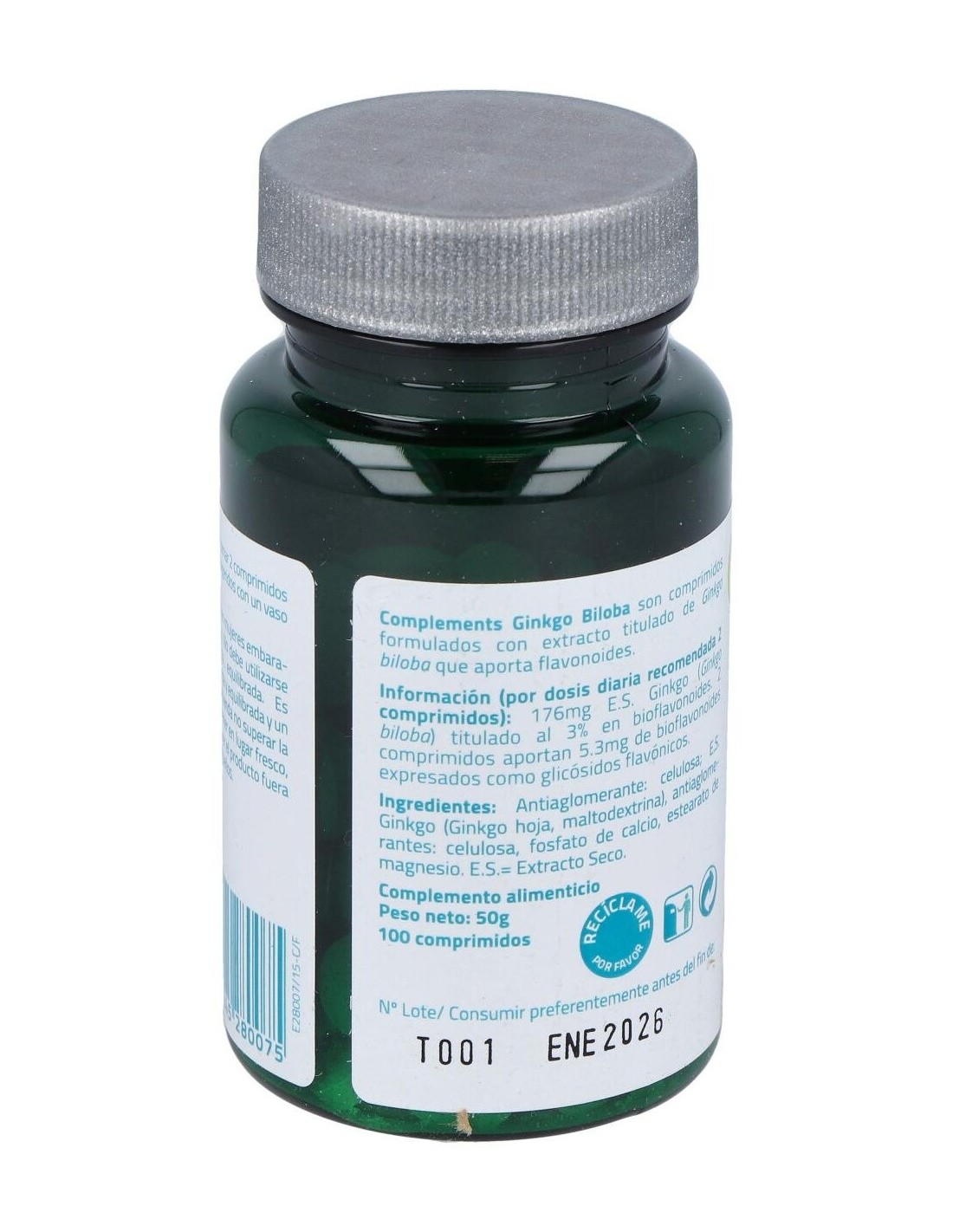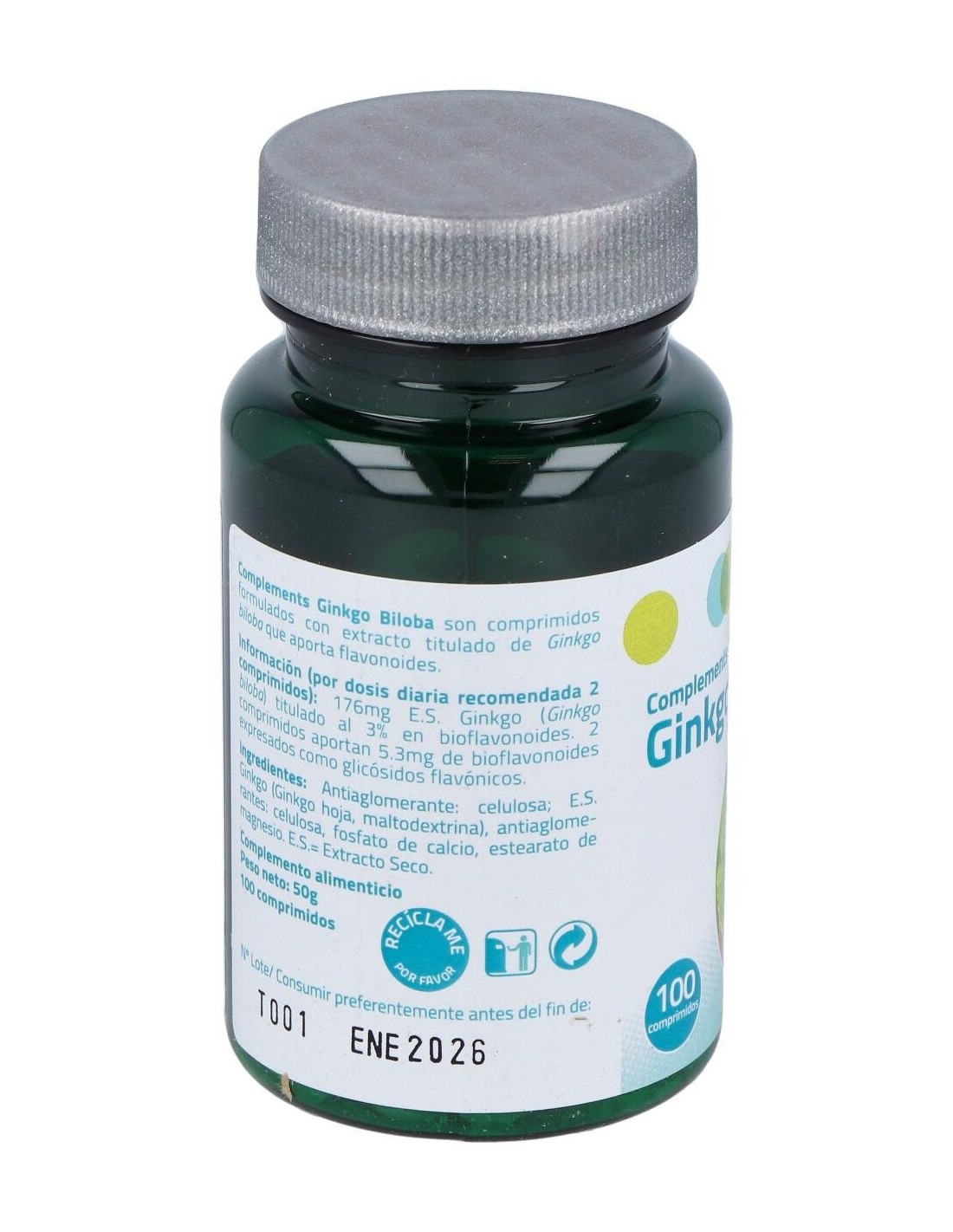 - Contiene 100 comprimidos con extracto estandarizado de Ginkgo biloba, facilitando una dosificación práctica y constante.