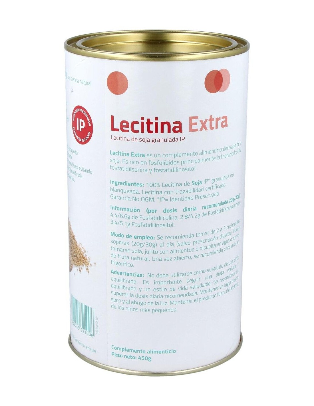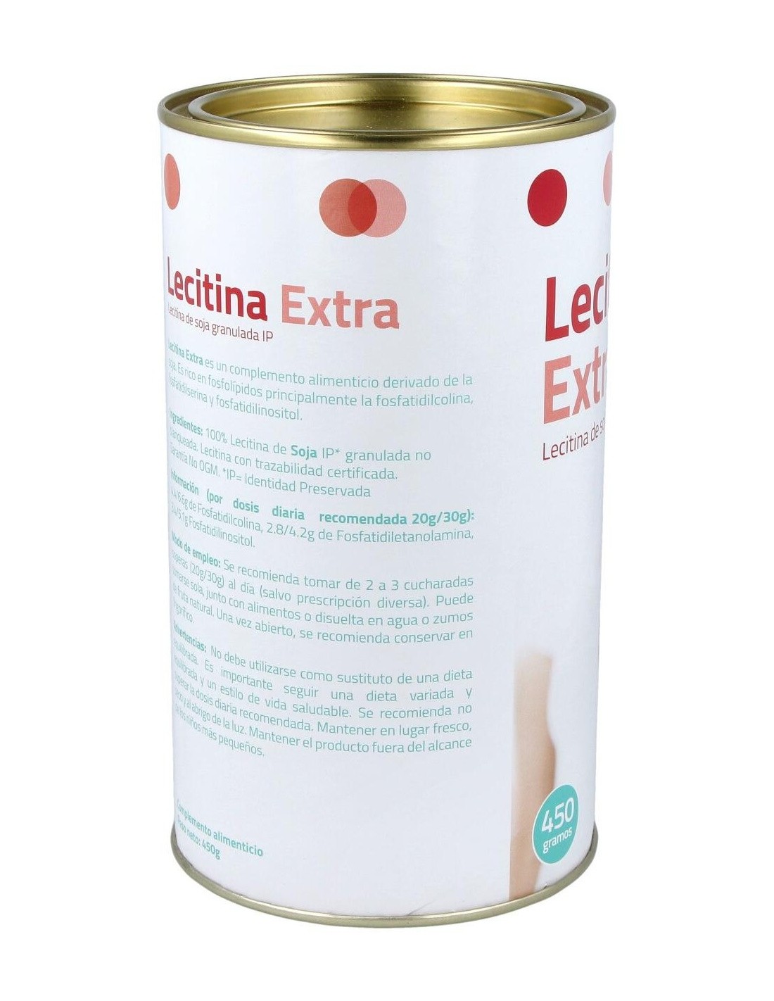 - Contiene lecitina en presentación de 450 gramos, facilitando su dosificación y uso prolongado.