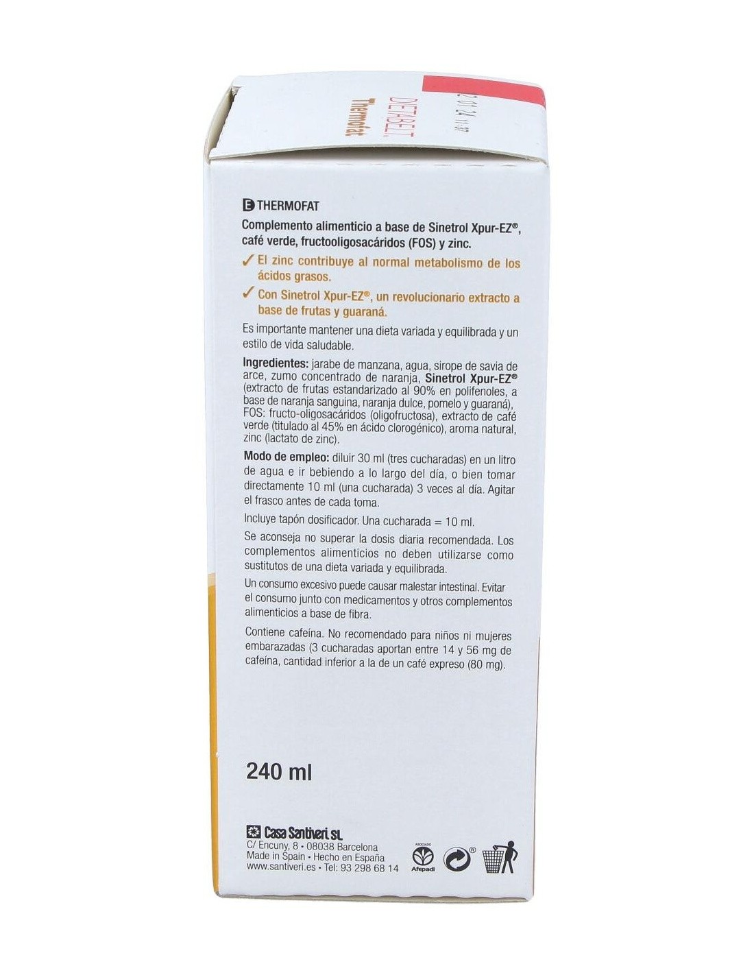 Dietabelt Quema Thermofat 240Ml. de Santiveri