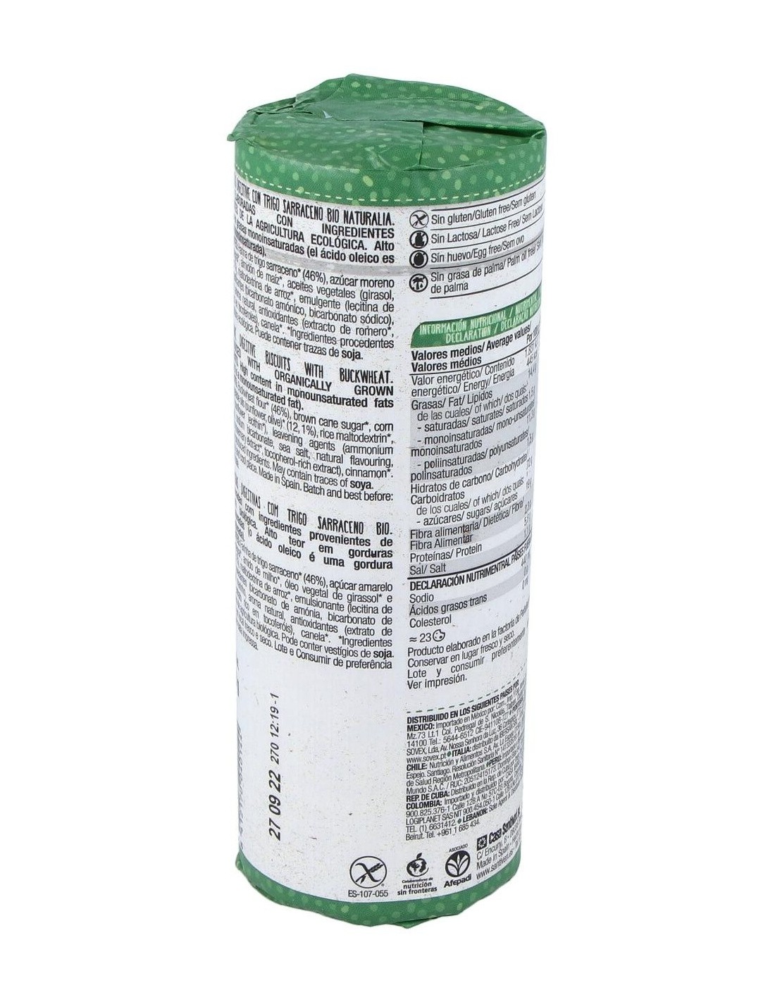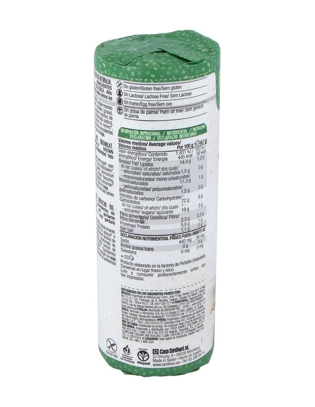 Sin gluten, lactosa, huevo ni aceite de palma.