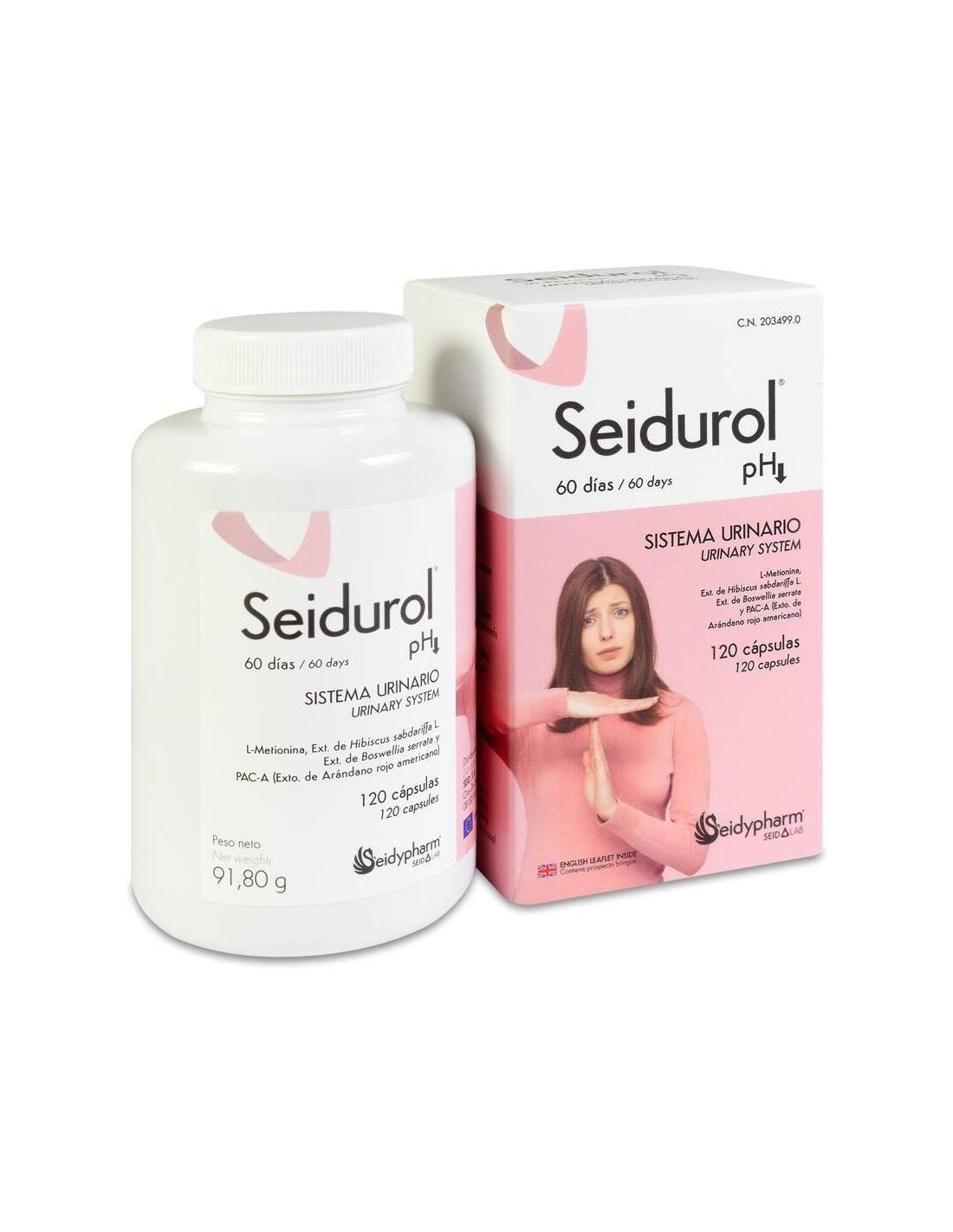 SEIDComplemento alimenticio a base de L-Metionina, extracto de Hibiscus Sabdariffa y Boswellia Serrata y proantocianidinas de tipo A (de extracto de Arándano rojo americano), que contribuye al normal funcionamiento del sistema urinario, principalmente mediante la acidificación del medio urinario y creando un ambiente adverso al desarrollo y proliferación bacteriana. Compatible con la toma de antibióticos. Apto para embarazadas.