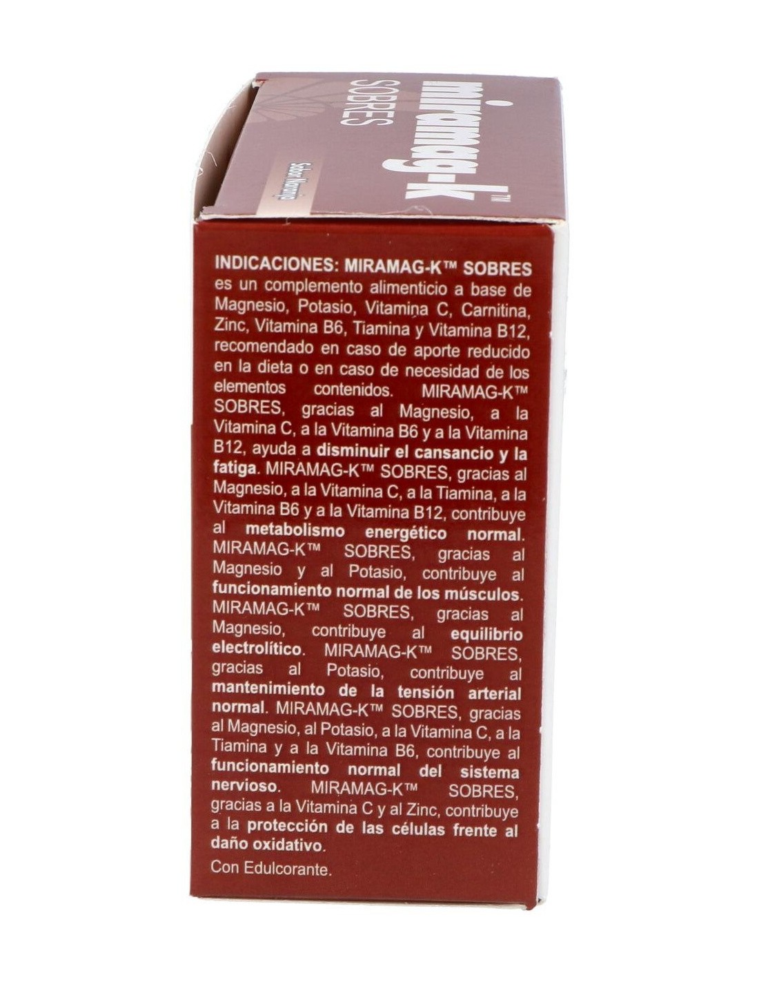 Complemento alimenticio a base de Magnesio, Potasio, Vitamina C, Carnitina, Zinc, Vitamina B6, Vitamina B1 y Vitamina B12, recomendado en casos de aporte reducido en la dieta o en casos de necesidad de los elementos contenidos. Ayuda a disminuir el cansancio y la fatiga, contribuye al metabolismo energético normal, al funcionamiento normal de los músculos, al equilibrio electrolítico, al mantenimiento de la tensión arterial normal y al funcionamiento normal del sistema nervioso.