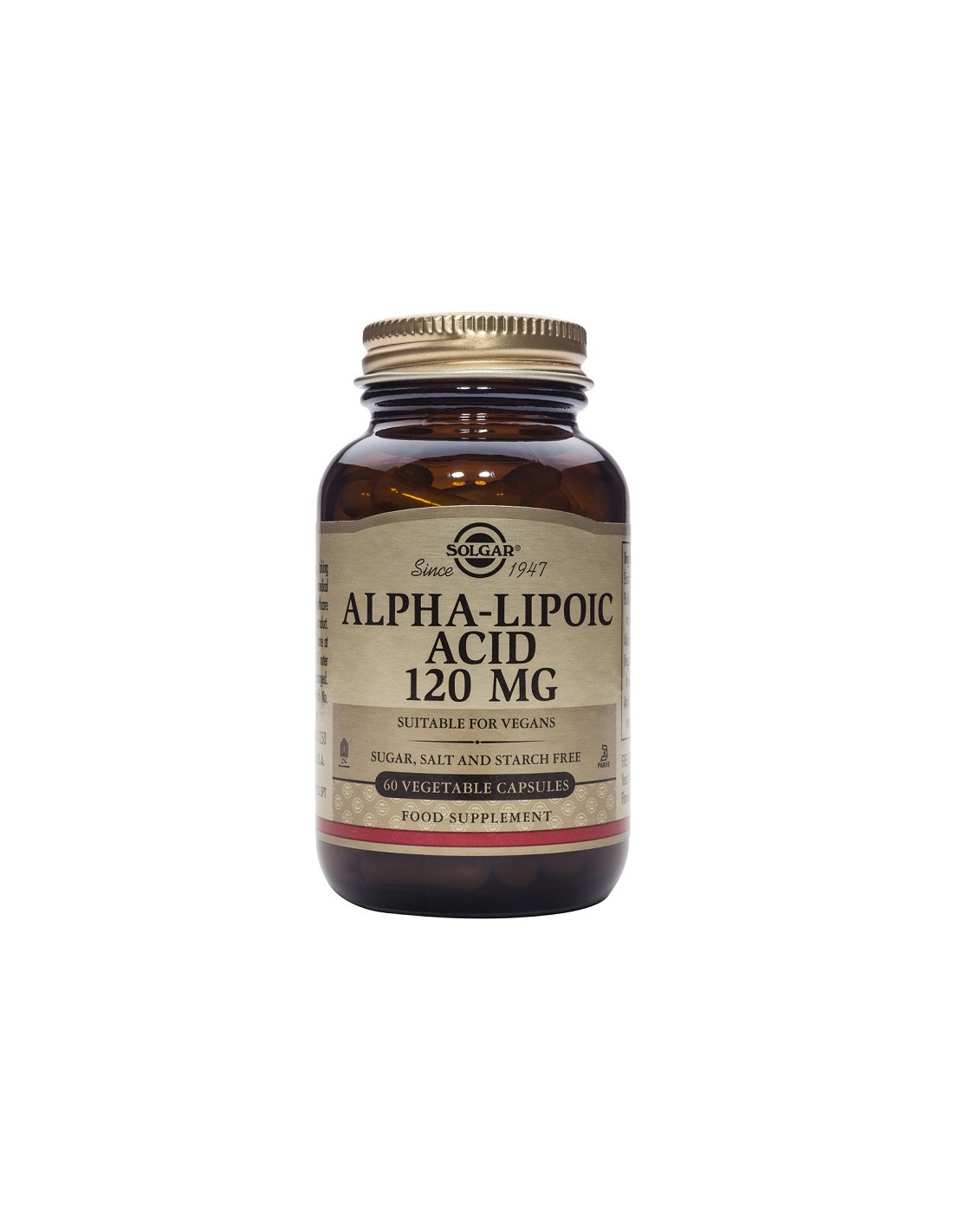 SOLGARCaracterísticas y Beneficios Exclusivos de Acido Alfa Lipoico 120Mg. 60Vegicaps de Solgar