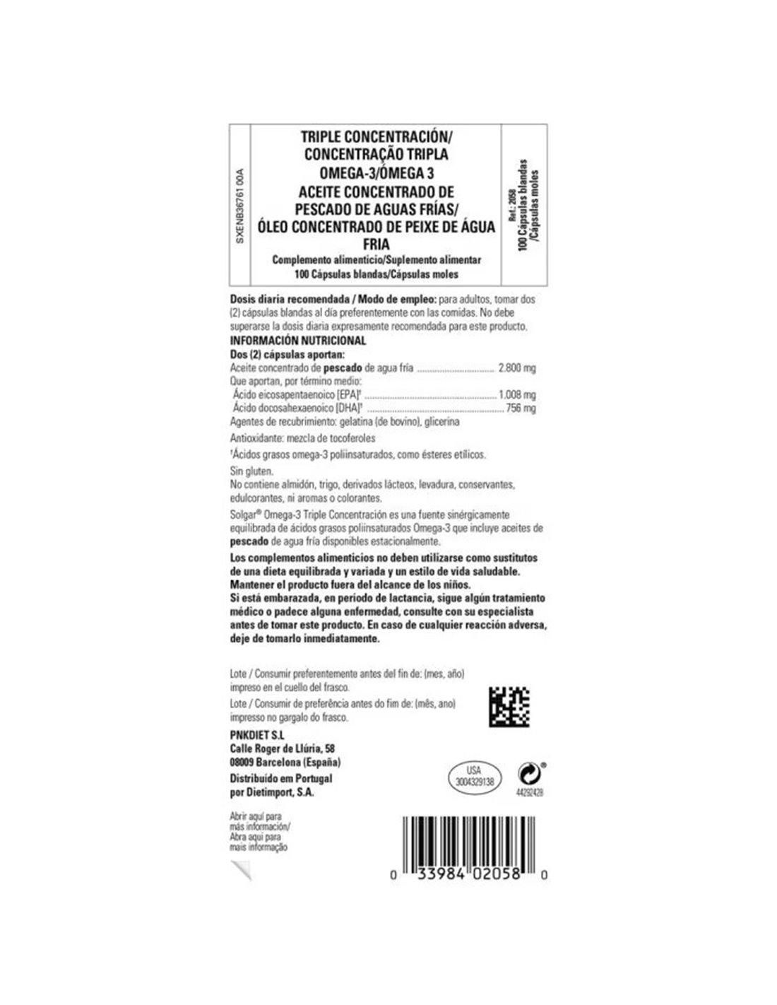 Omega 3 Triple Concentracion 100Cap.Blandas de Solgar