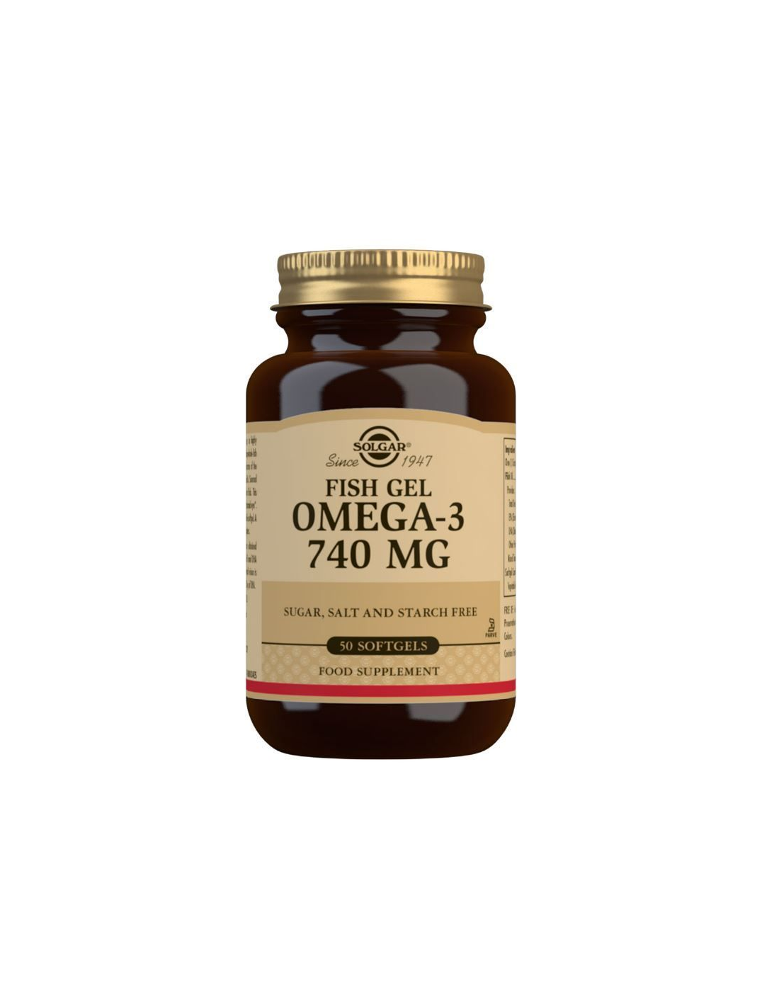 Fish Gel Omega-3 740 mg de Solgar contiene una fórmula altamente absorbible, que proporciona una fuente concentrada de ácidos grasos poliinsaturados omega-3 EPA y DHA, procedente de pescado de agua fría disponible en temporada. Esta fórmula apoya la salud del corazón, el cerebro y la visión. Se presenta en una cápsula blanda de gel de pescado sostenible. Una alternativa perfecta a las gelatinas estándar.