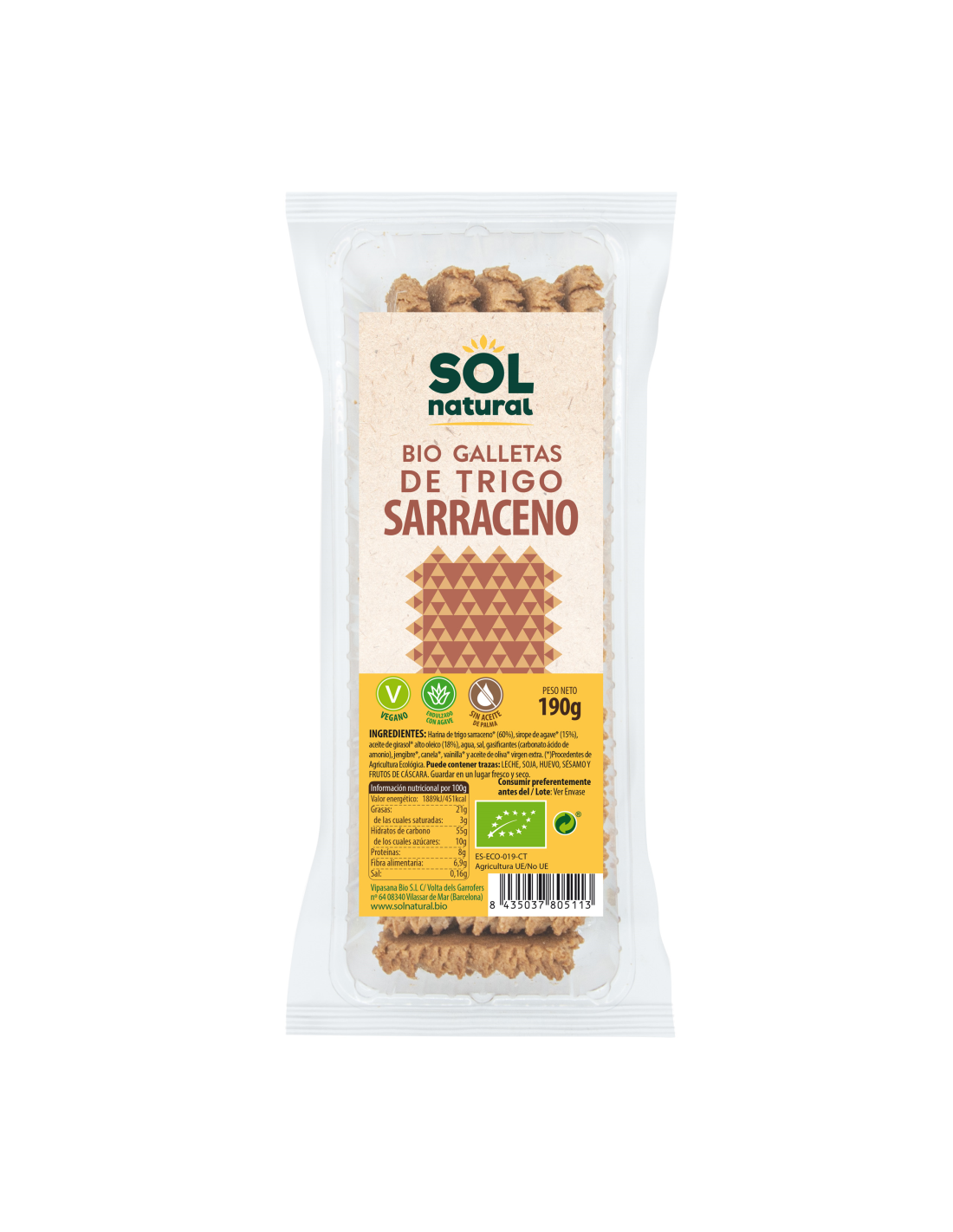 SOLNATURALCaracterísticas y Beneficios del Pack 16 Uds. Galletas De Trigo Sarraceno Bio 190 g de Solnatural