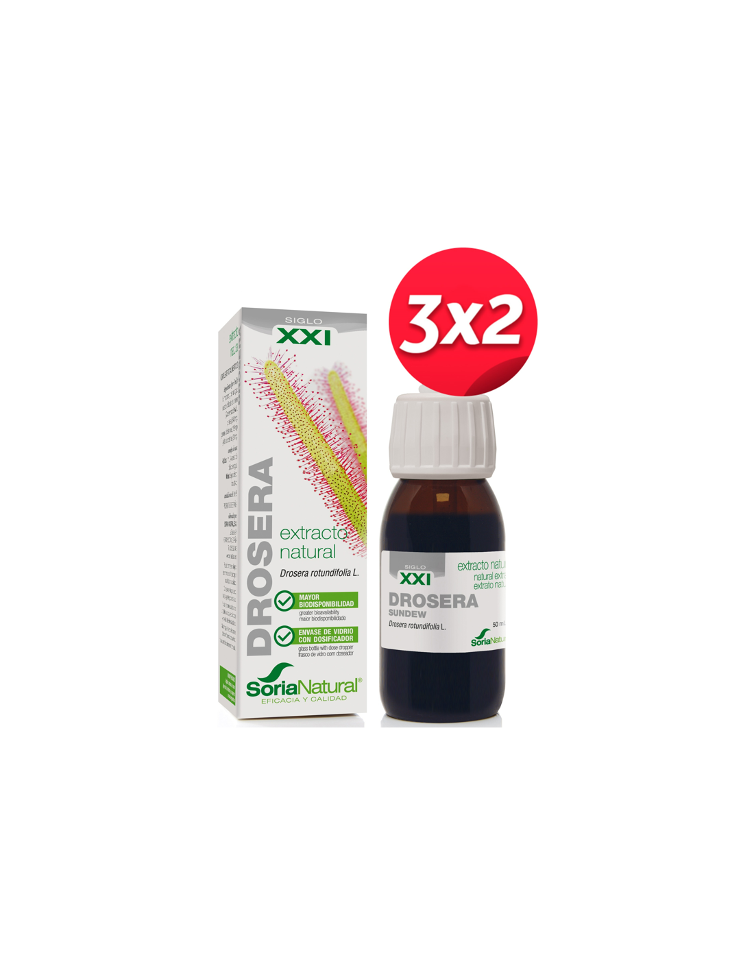 SORIA NATURAL 3X2Este extracto de drosera calma la tos, es expectorante (favorece la expulsión de las secreciones pulmonares), antiespasmódica y antibacteriana.