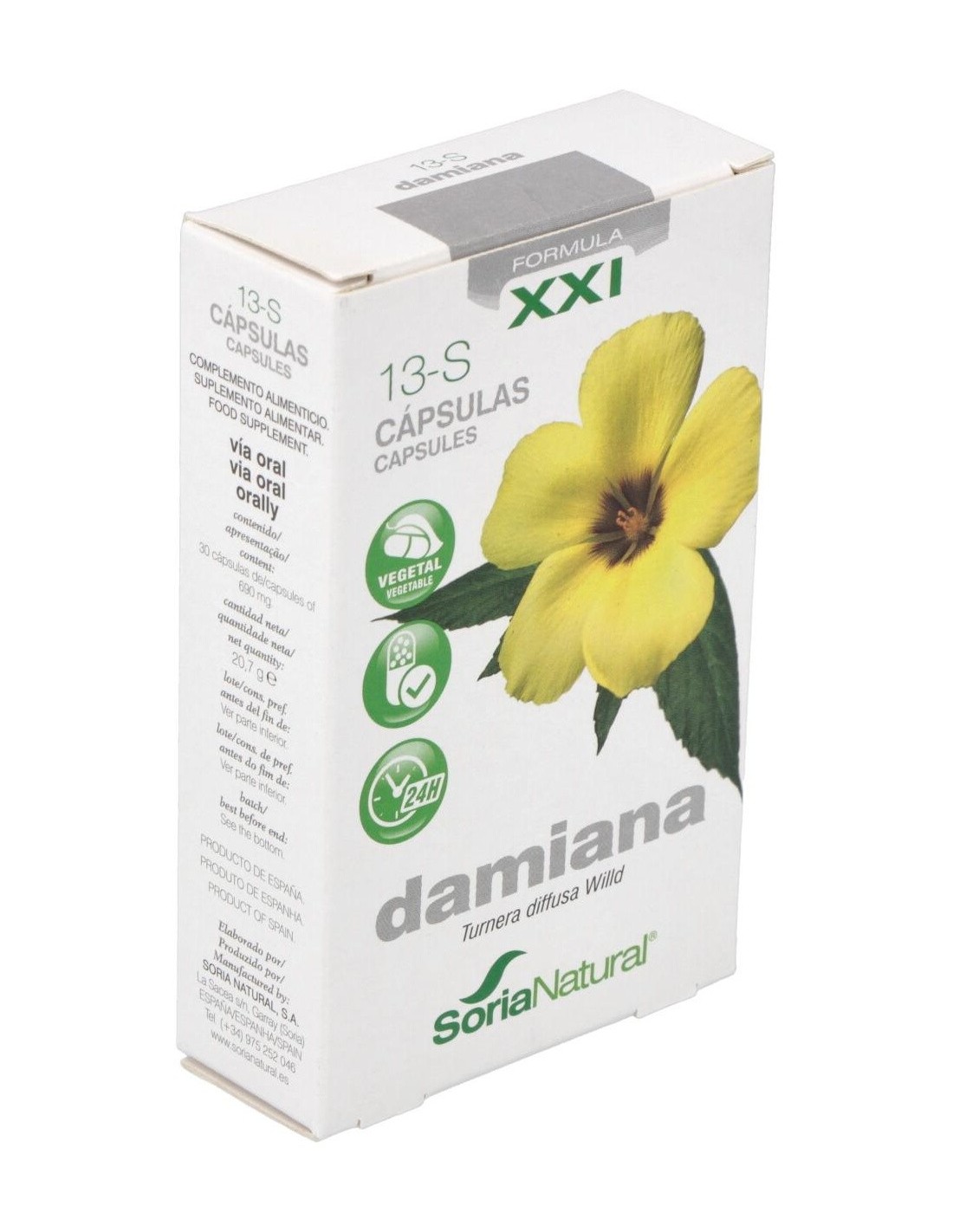 Cap.S 13 Damiana Xxi 30Cap. de Soria Natural ofrece una alternativa natural para complementar el cuidado personal, integrándose fácilmente en diferentes estilos de vida.