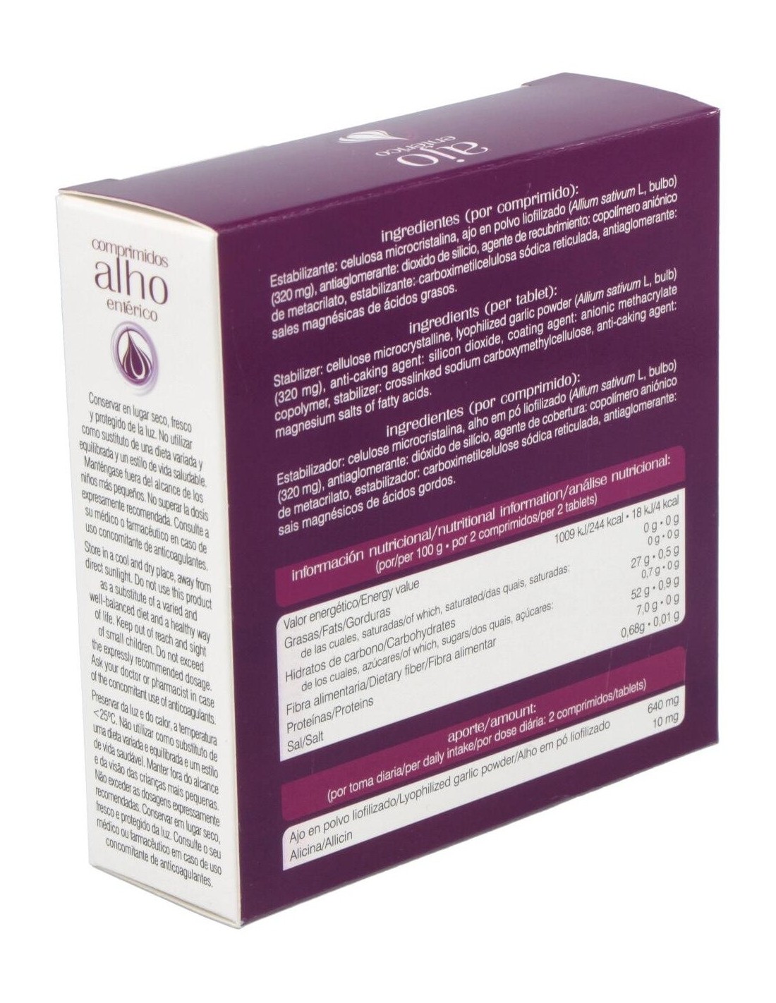 El Ajo Enterico 30Comp. de Soria Natural es un complemento alimenticio diseñado para personas que buscan incorporar ajo en su dieta diaria de manera práctica y controlada. Es adecuado para quienes valoran productos elaborados con ingredientes naturales y formulados para facilitar su consumo.