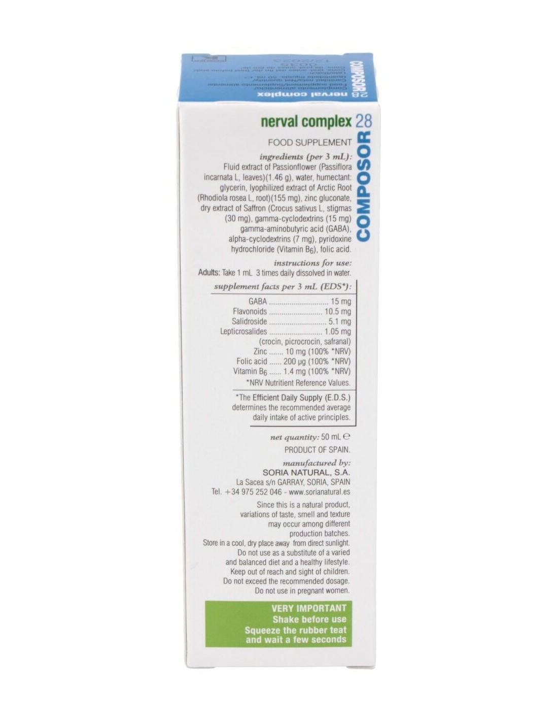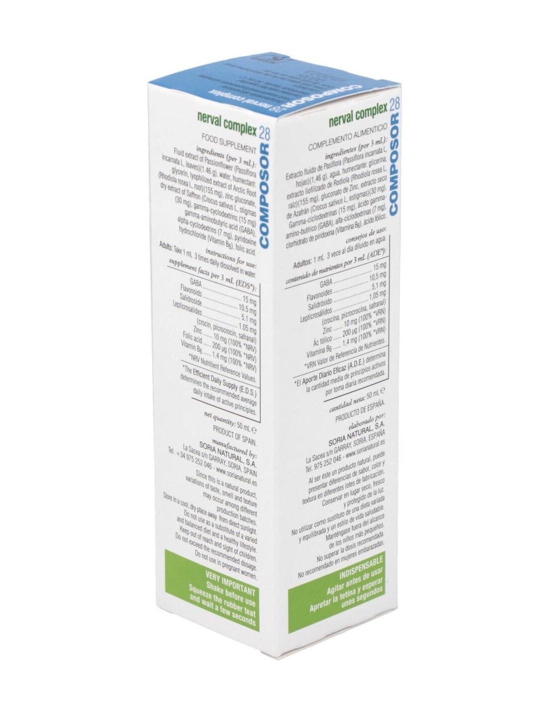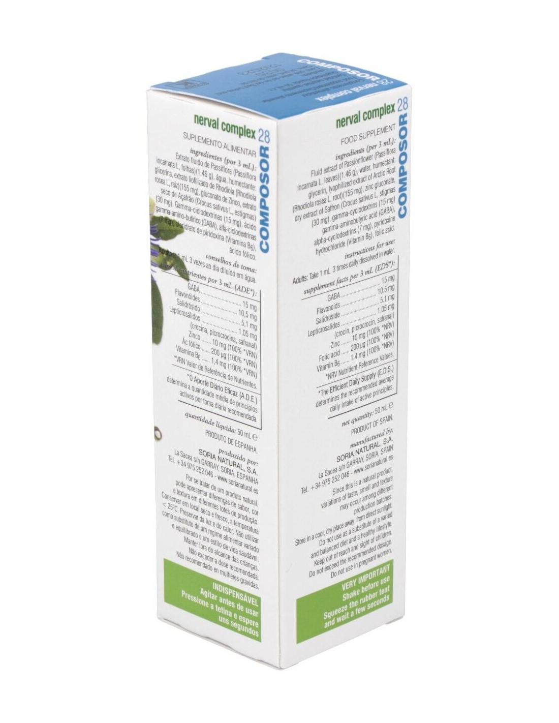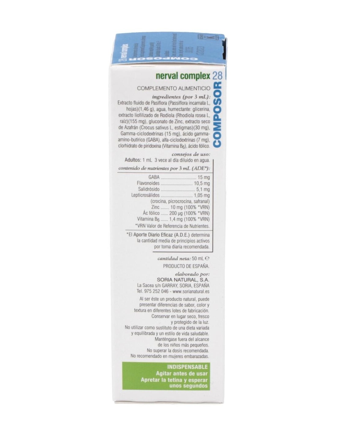 Composor 28 Nerval Complex Xxi 50Ml. de Soria Natural es un complemento formulado para personas que buscan apoyar su bienestar emocional y equilibrio diario mediante ingredientes naturales. Está diseñado para quienes prefieren opciones basadas en extractos vegetales dentro de su rutina de cuidado personal.