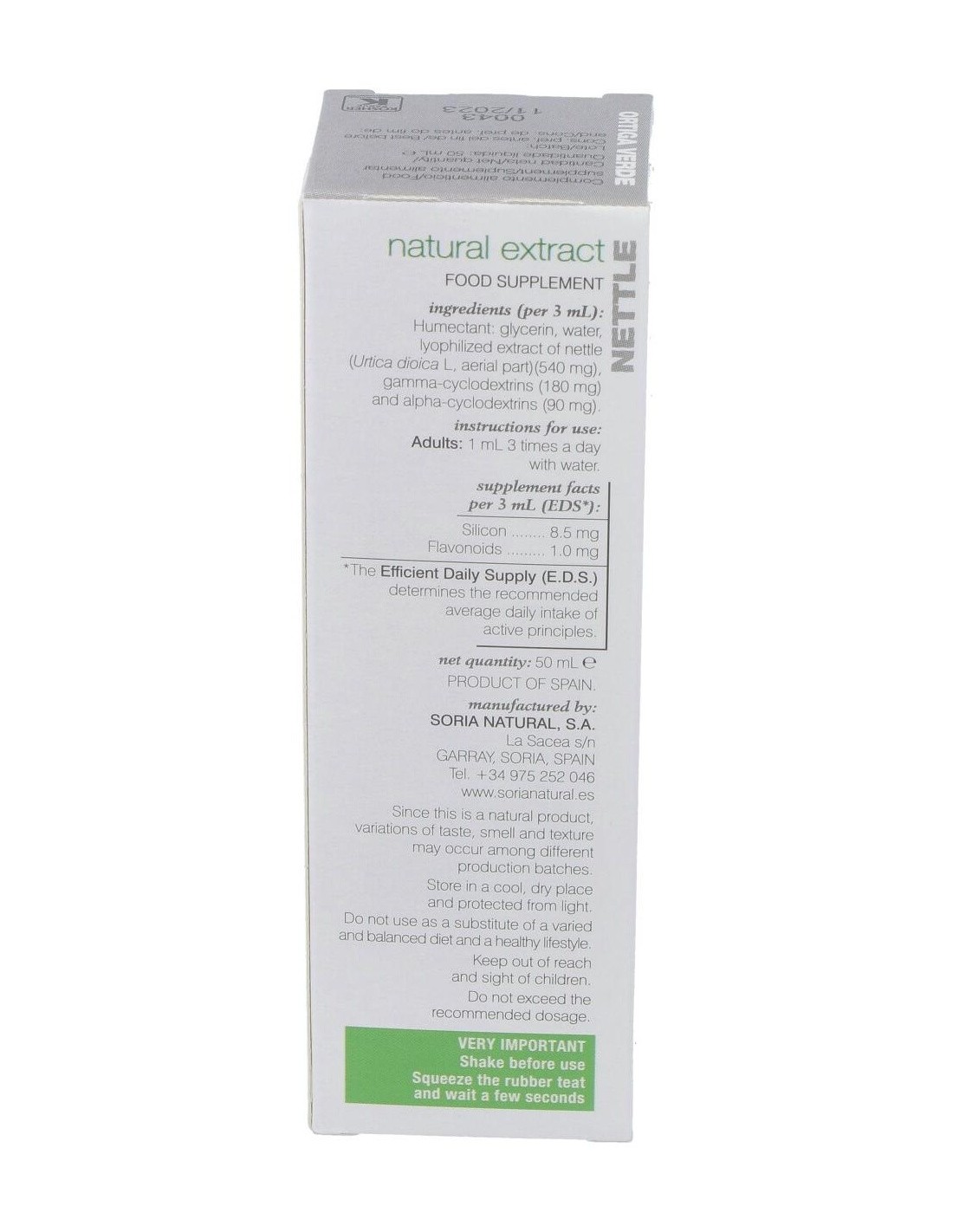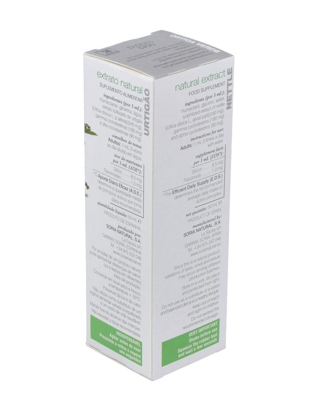 SORIA NATURALEste extracto de ortiga verde tiene como propiedades el ser antihemorrágica (corta hemorragias), remineralizante, diurética, antidiabética, antirreumá