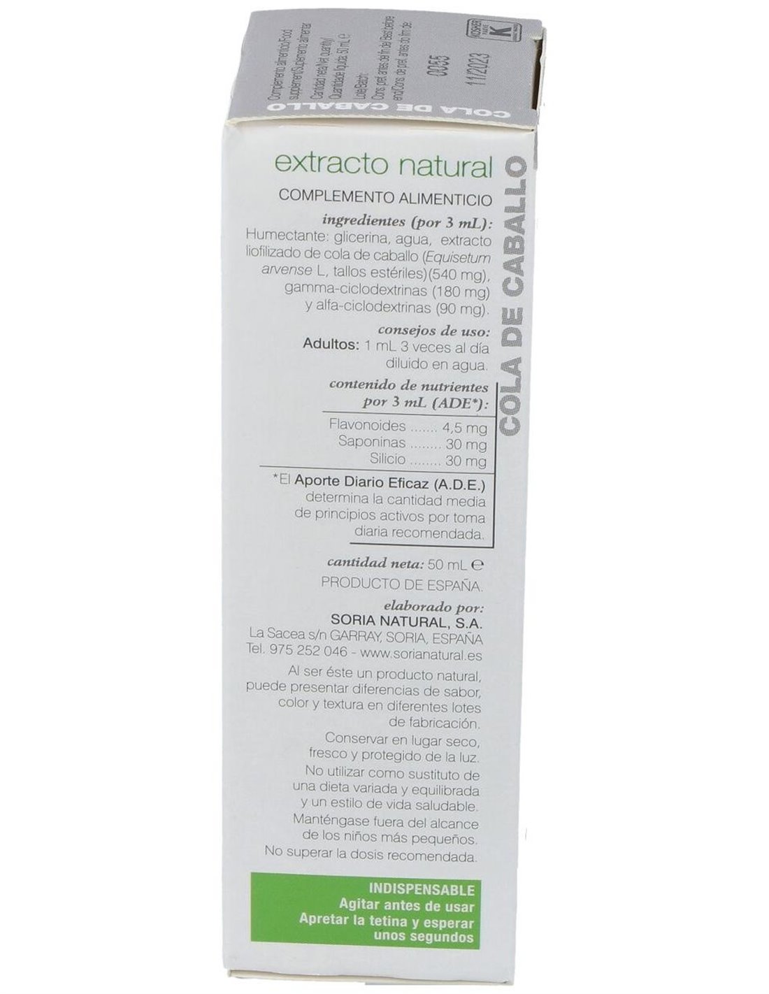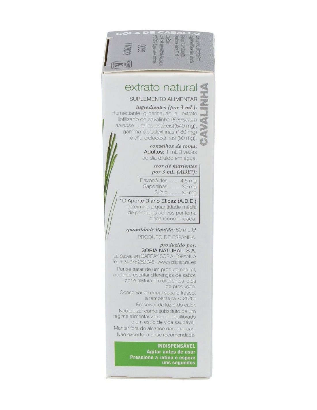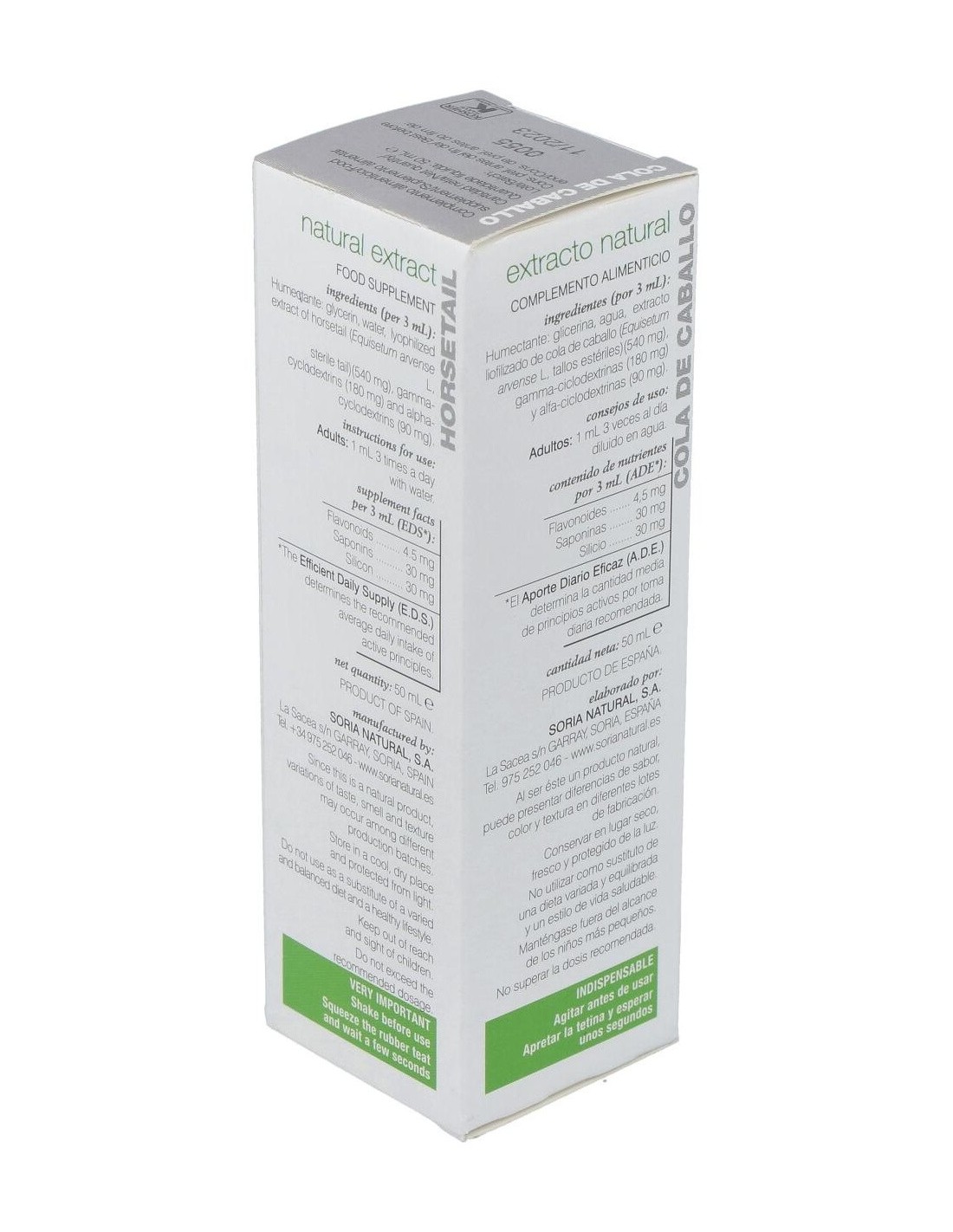 SORIA NATURALEste extracto de Cola de Caballo tiene propiedades diuréticas, antihemorrágicas, astringente, favorece la reparación del tejido conjuntivo, reminerali