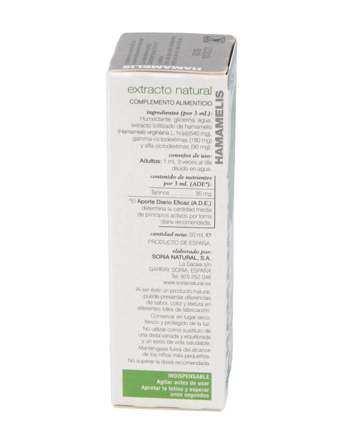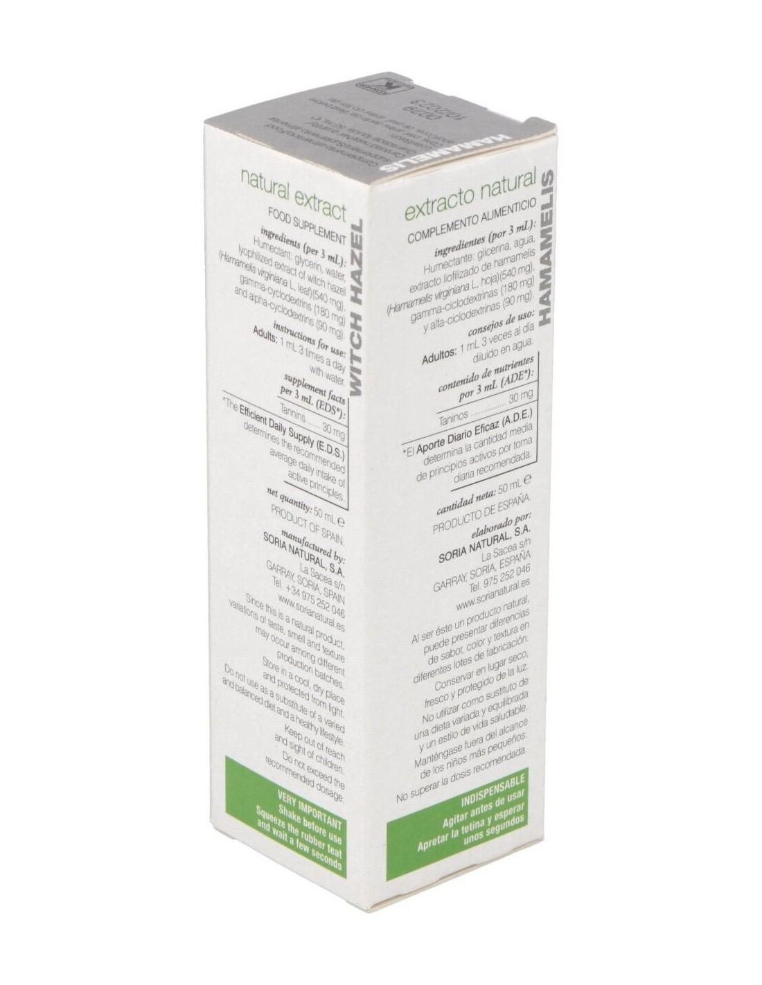 SORIA NATURALEste extracto de hamamelis tiene como propiedades el ser un vasoconstrictor venoso, tener acción vitamínica P, y ser astringente y antihemorrágico (co