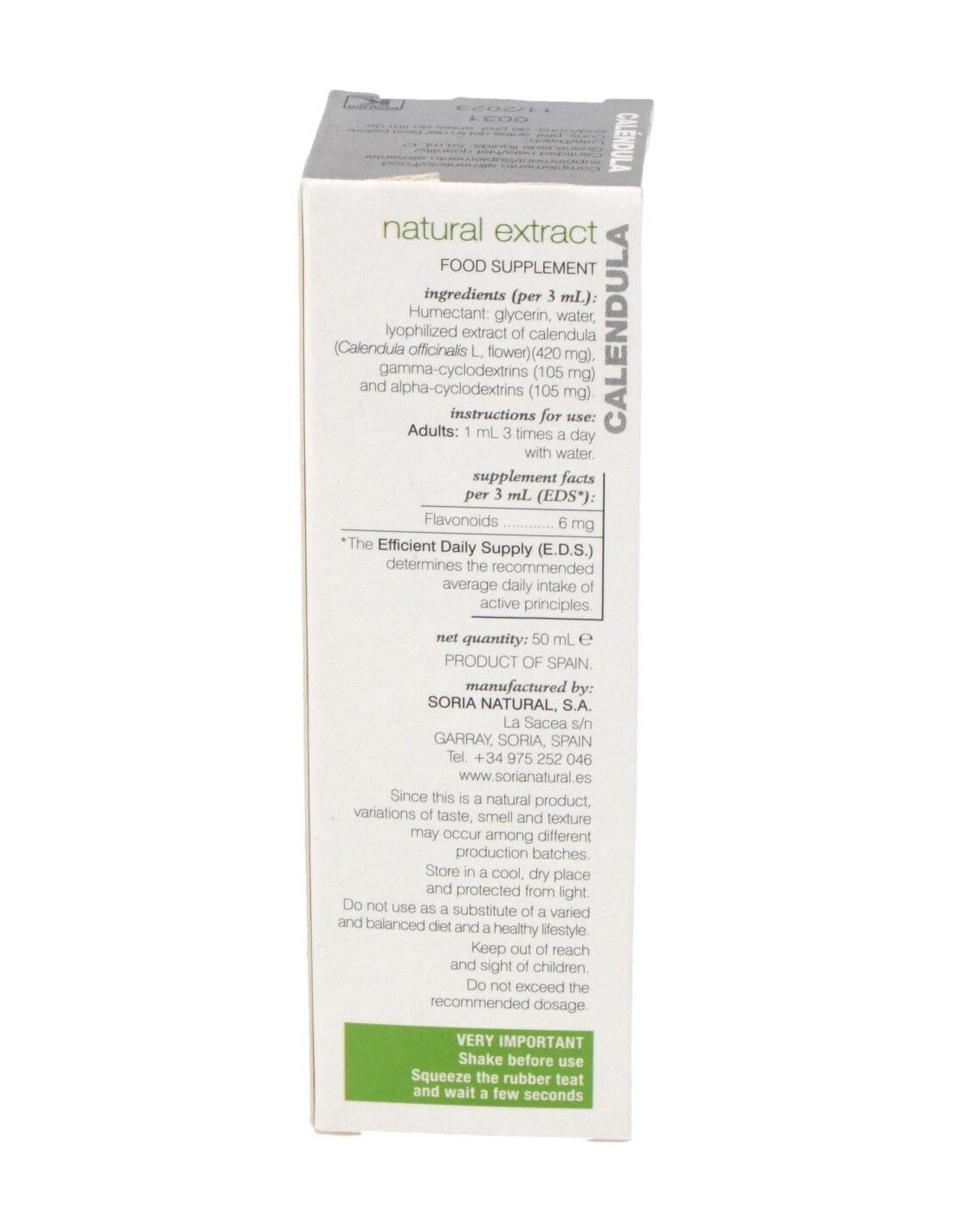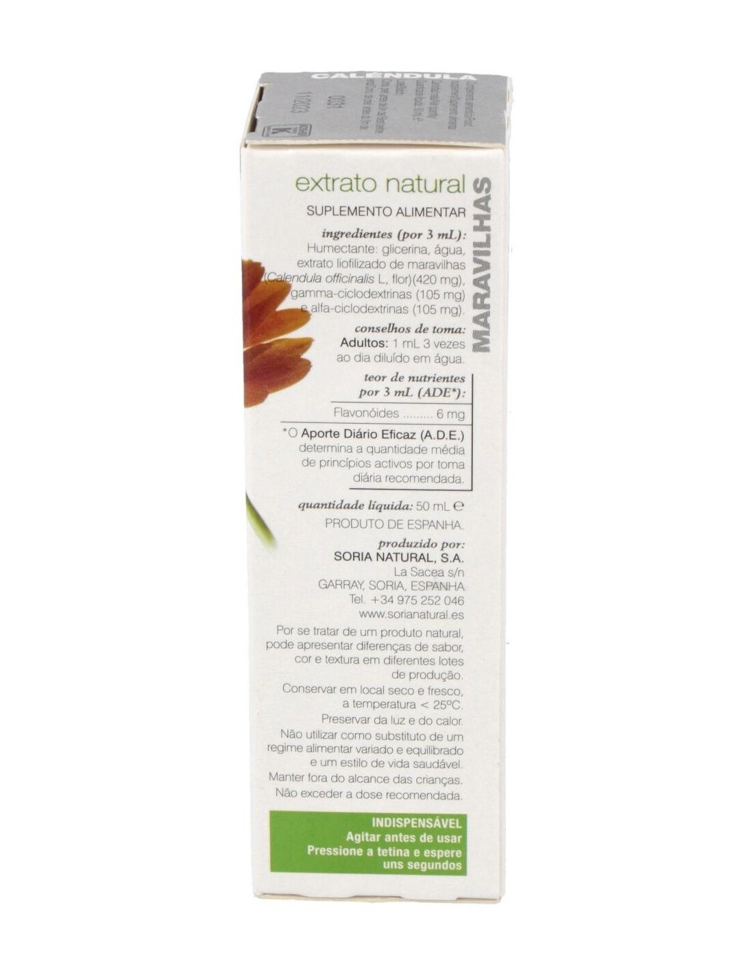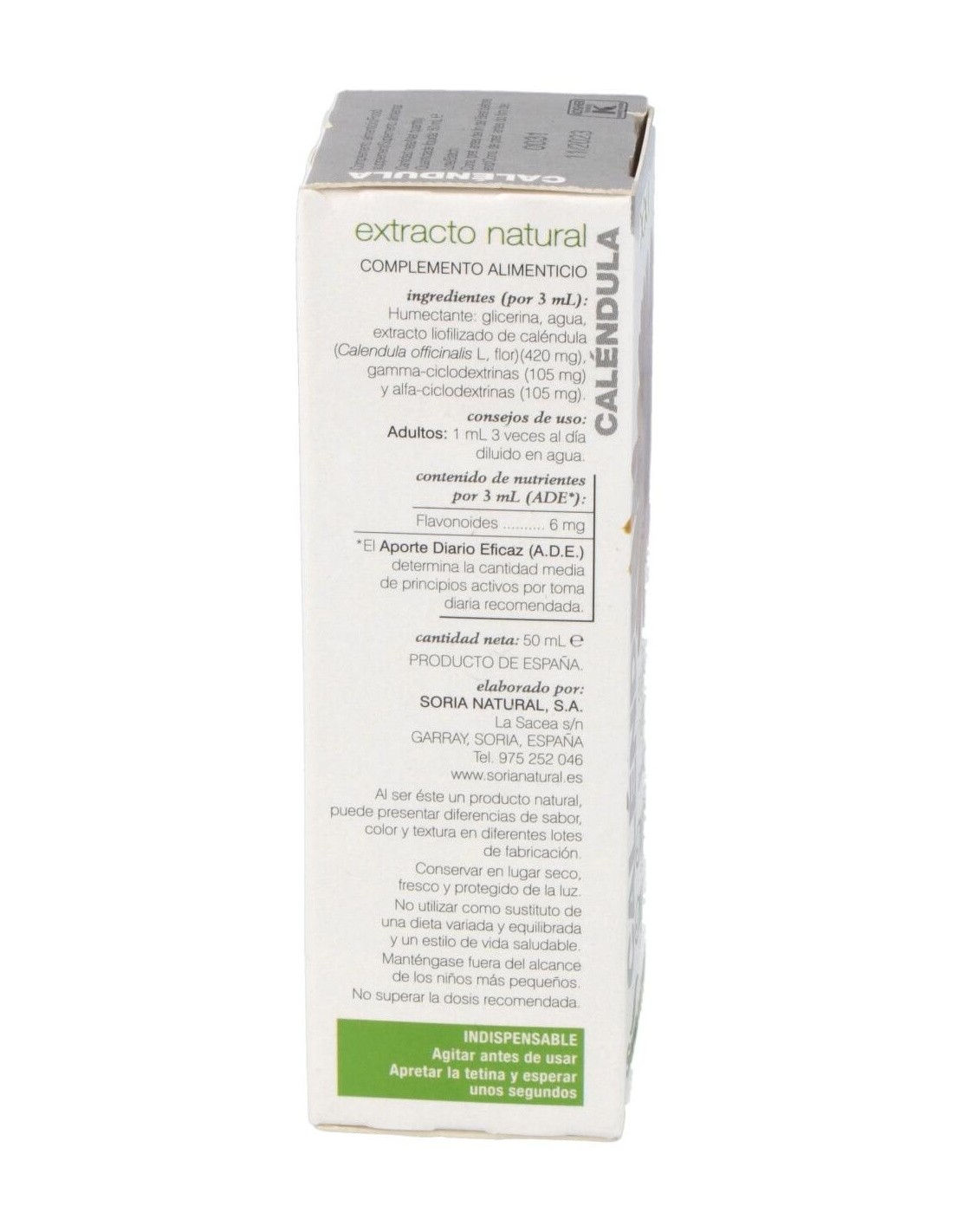 SORIA NATURALEste extracto de Caléndula tiene propiedades antiinflamatoria, antiséptica, cicatrizante, regulador de las menstruaciones (emenagoga), antiespasmódica