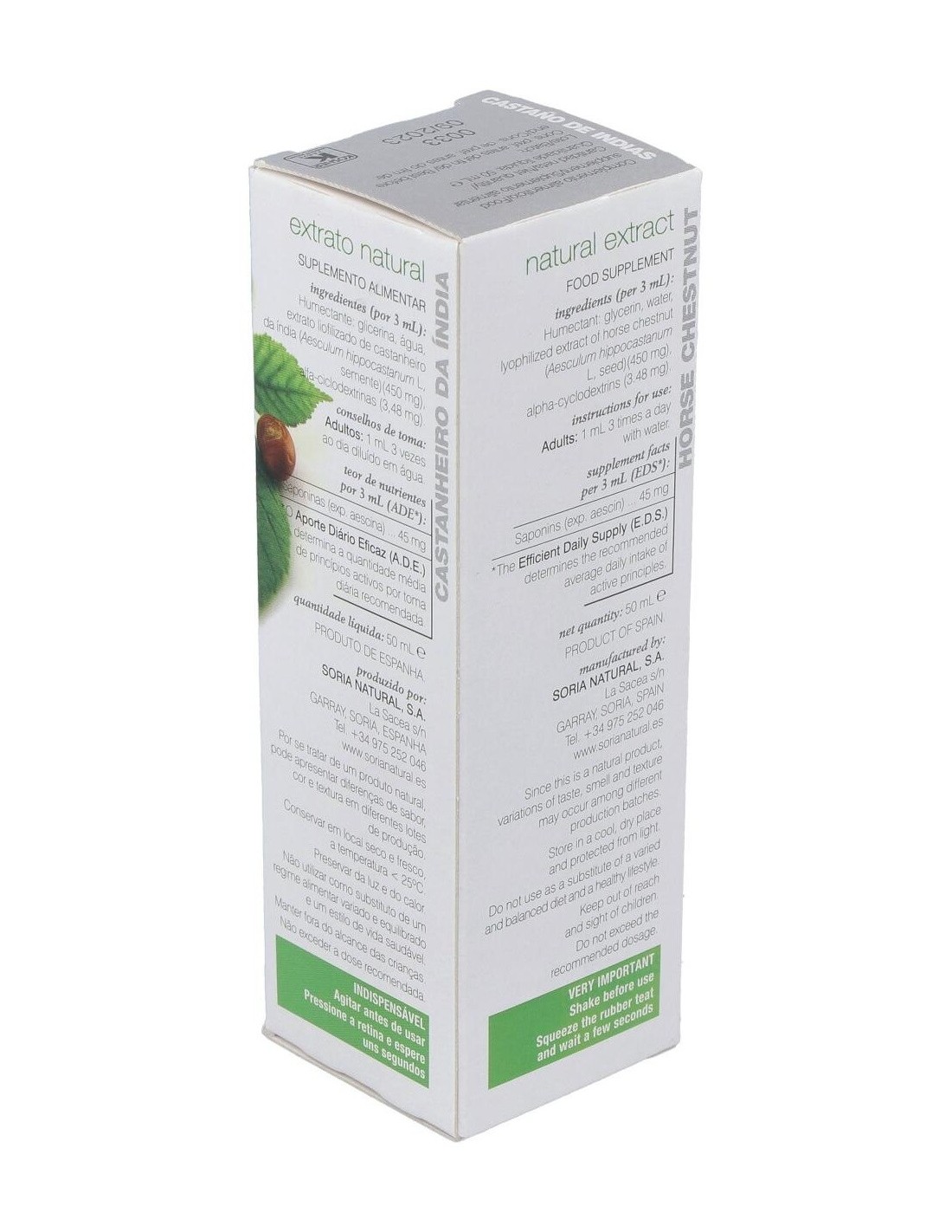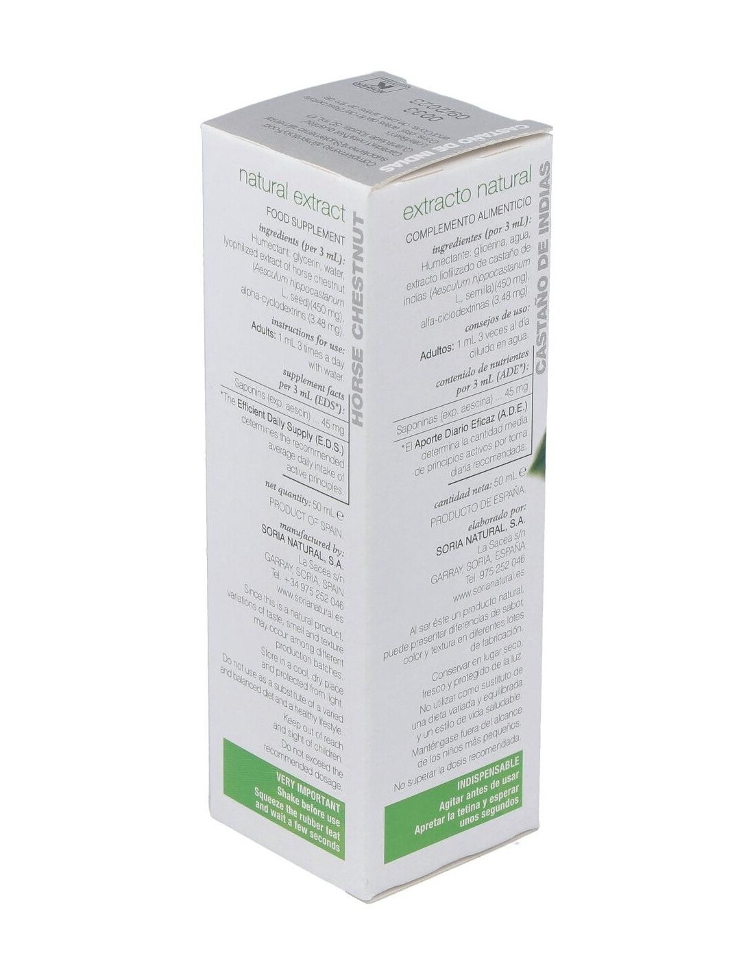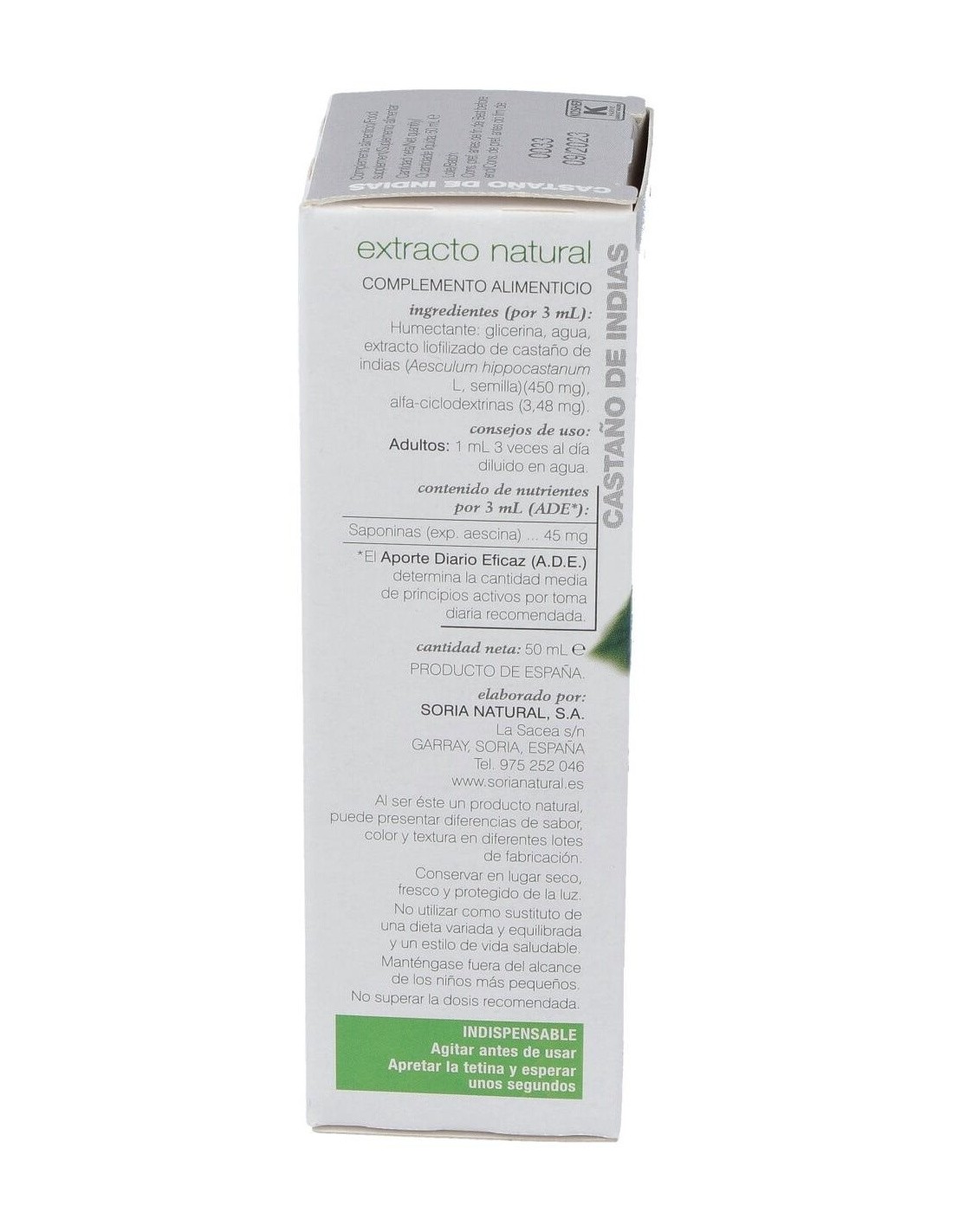 SORIA NATURALEste extracto de Castaño de Indias principalmente es un tónico venoso, vasoconstrictor, astringente, antiinflamatorio, antiedematoso y fluidifica la s