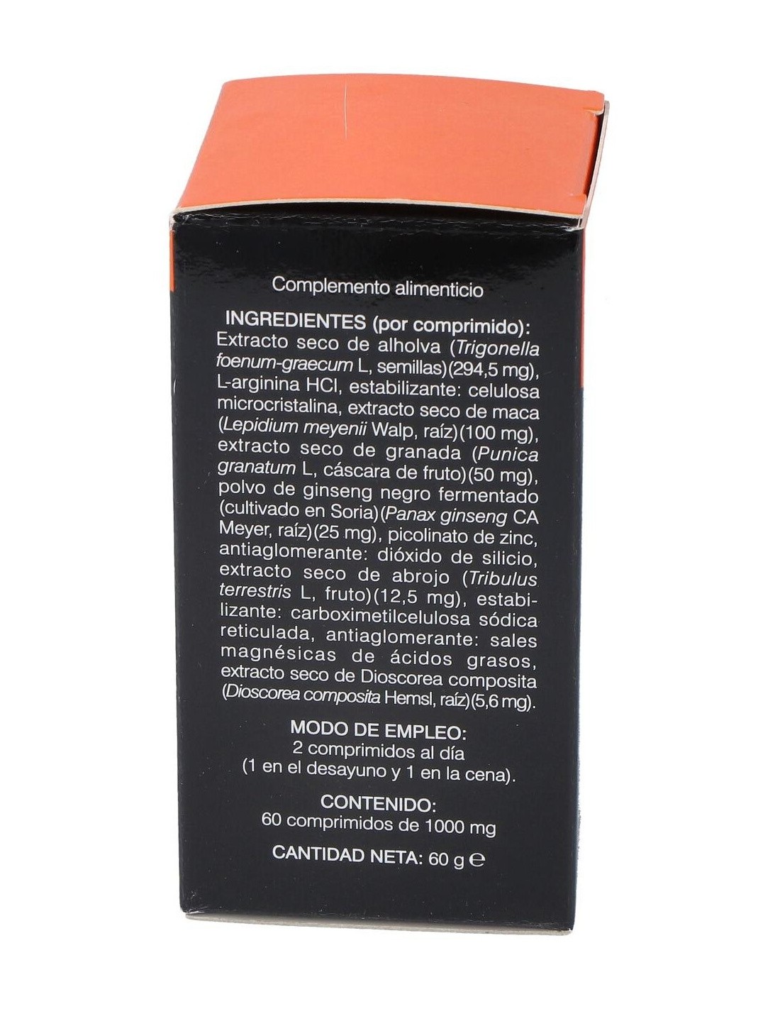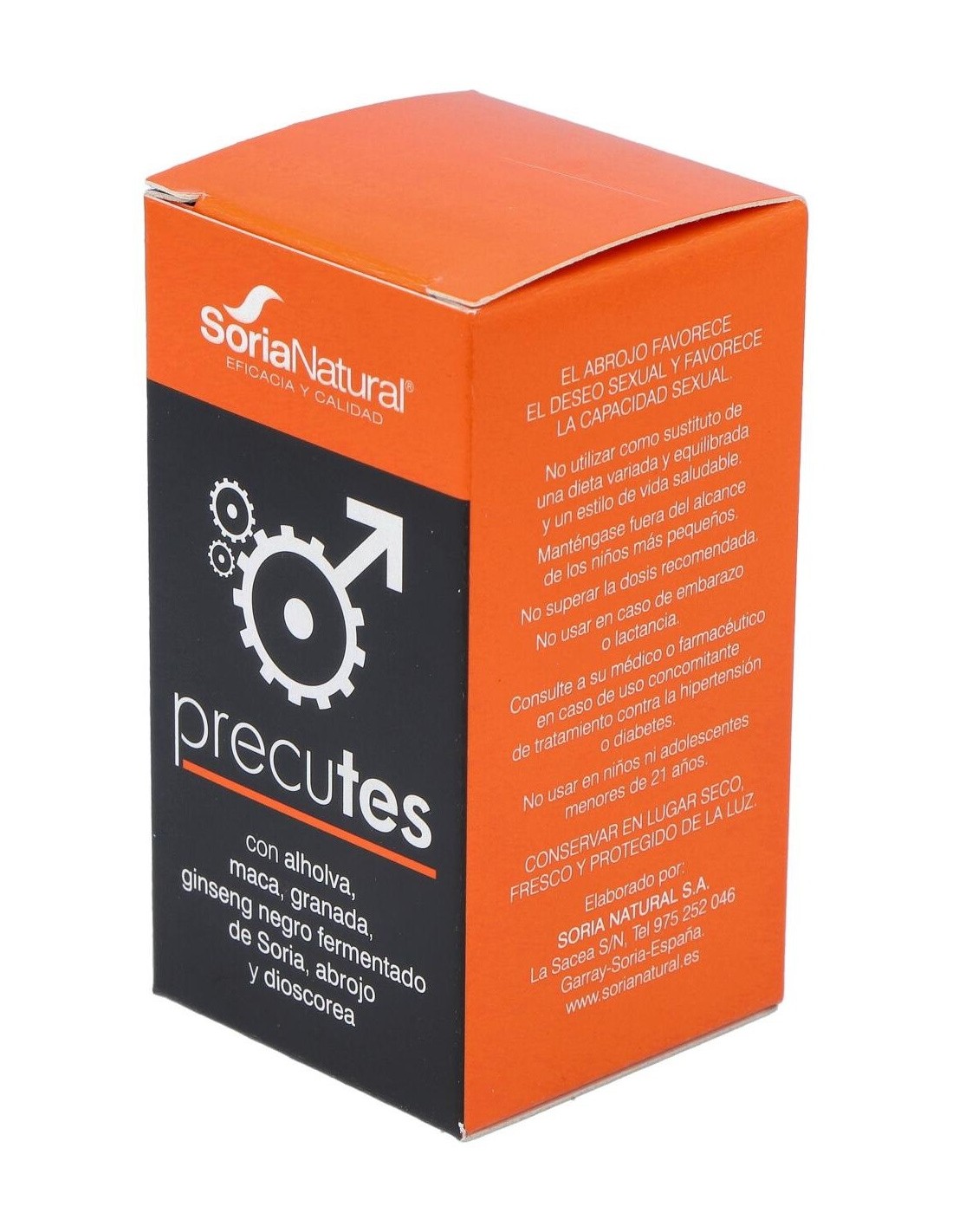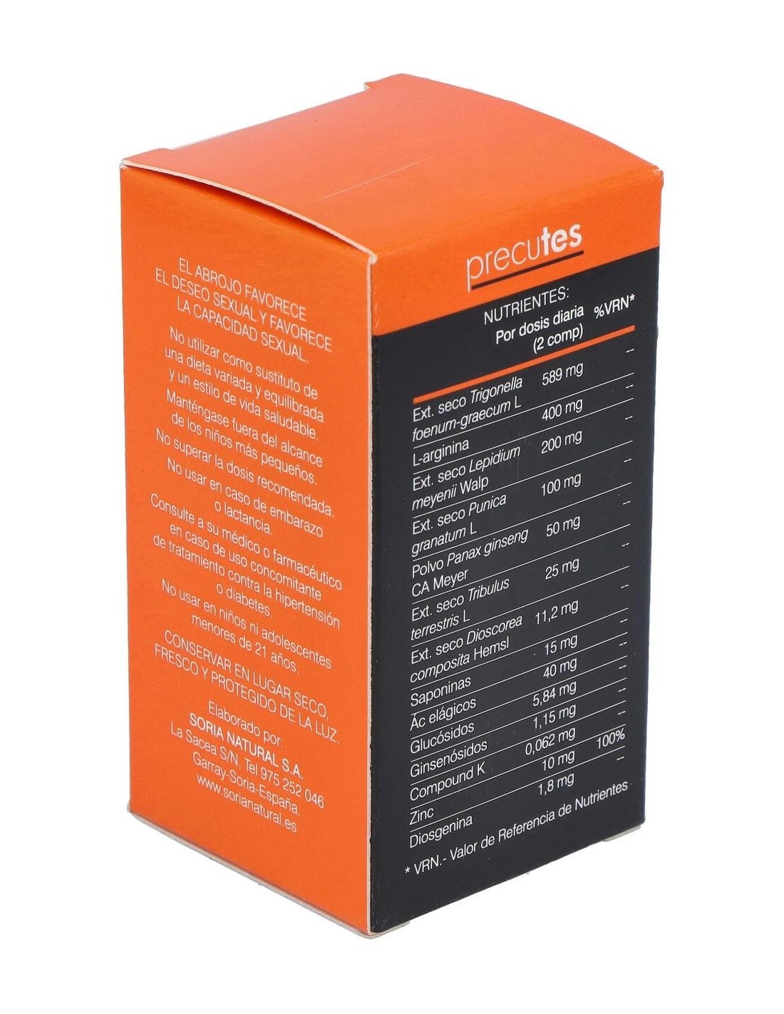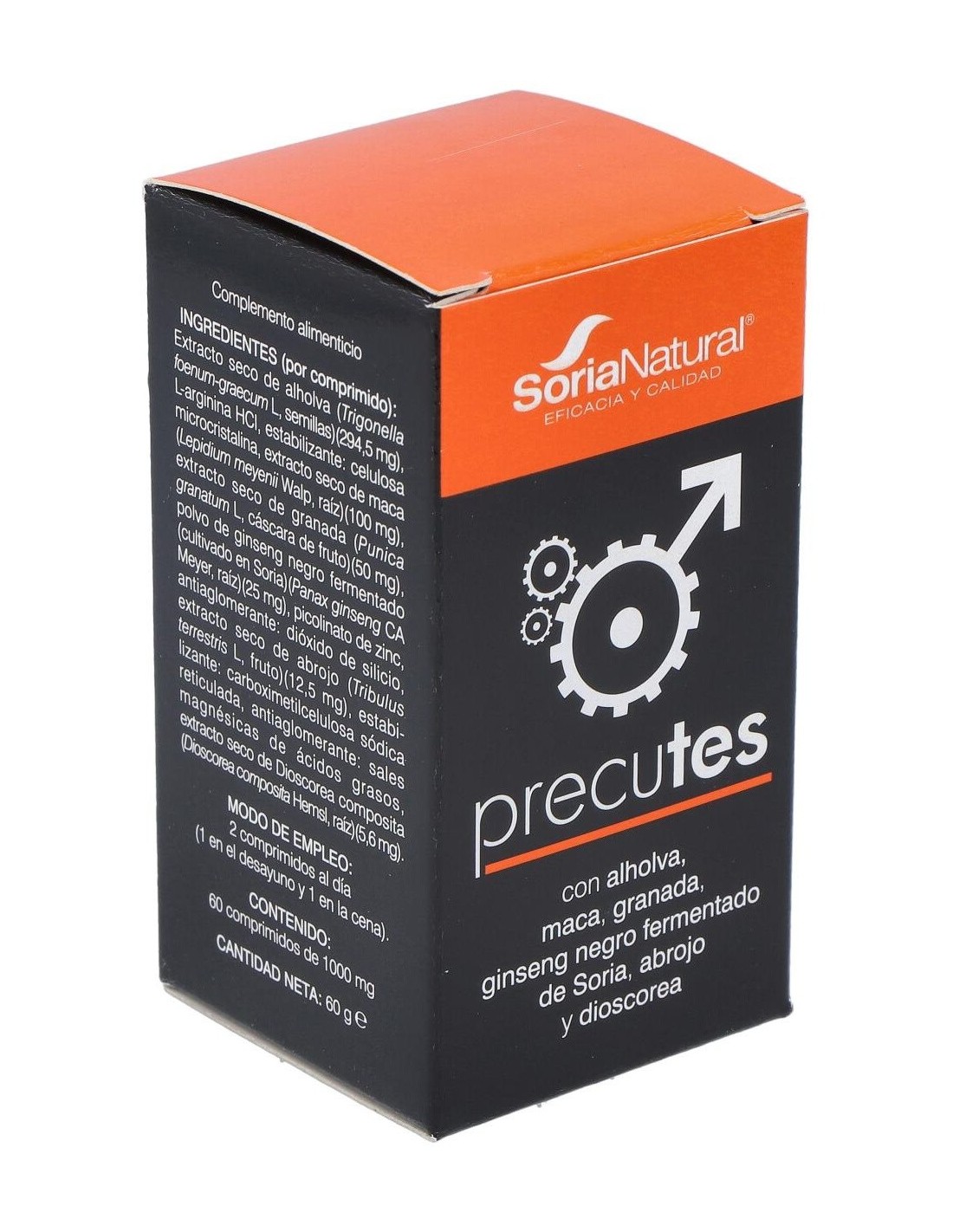 SORIA NATURALComprimidos elaborados a base de alholva, maca, granada y ginseng negro fermentado de Soria que combinados ayudan a evitar los efectos de la reducción de testosterona provocados por el paso del tiempo, como problemas cardiovasculares o metabólicos o trastornos como alteraciones del sueño o disfunción sexual.Modo de empleoTomar 2 comprimidos al día, uno en el desayuno y otro en la cena.