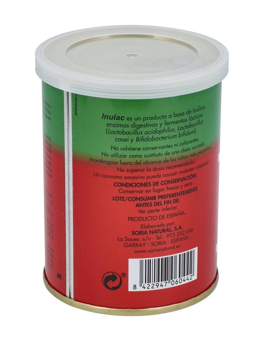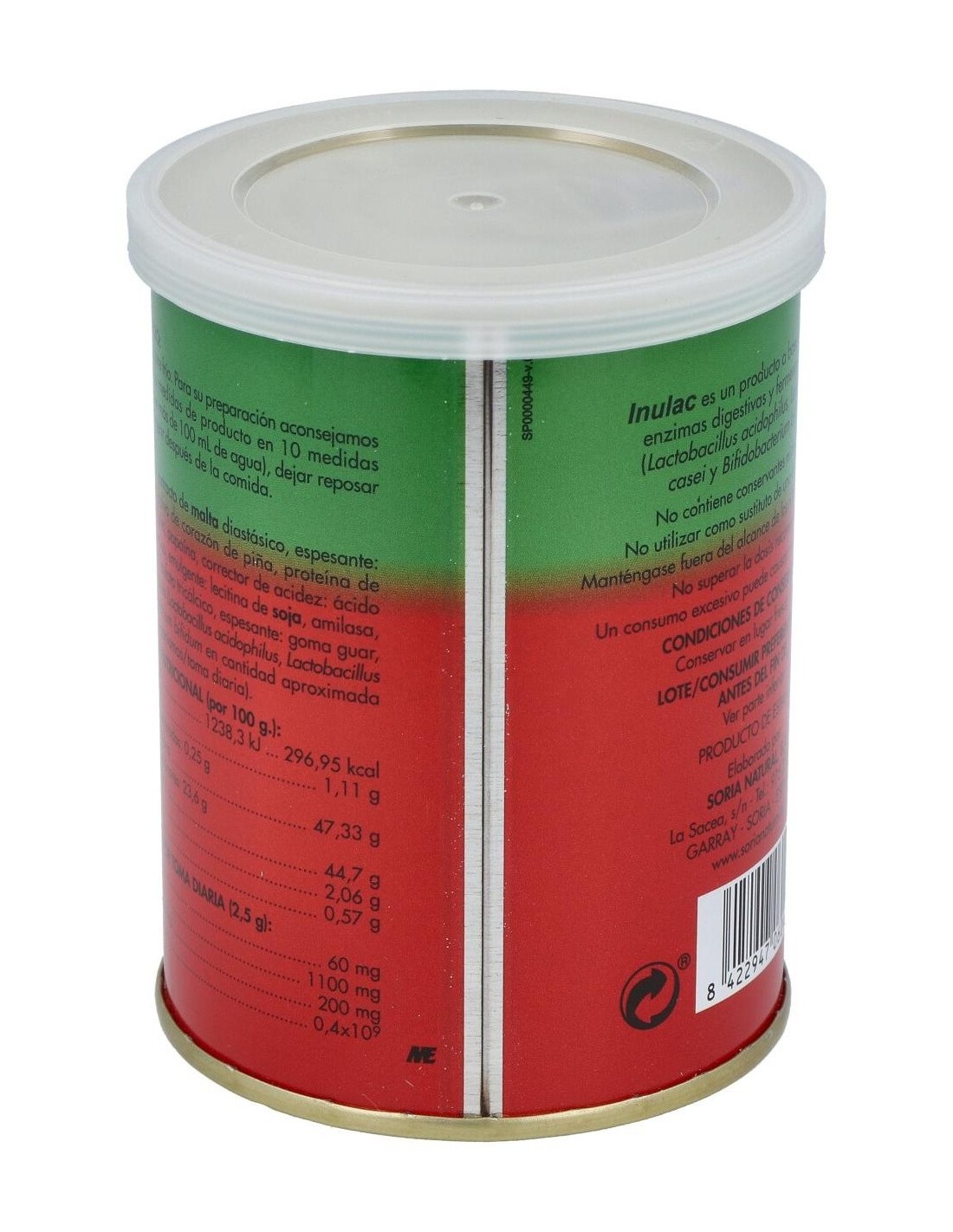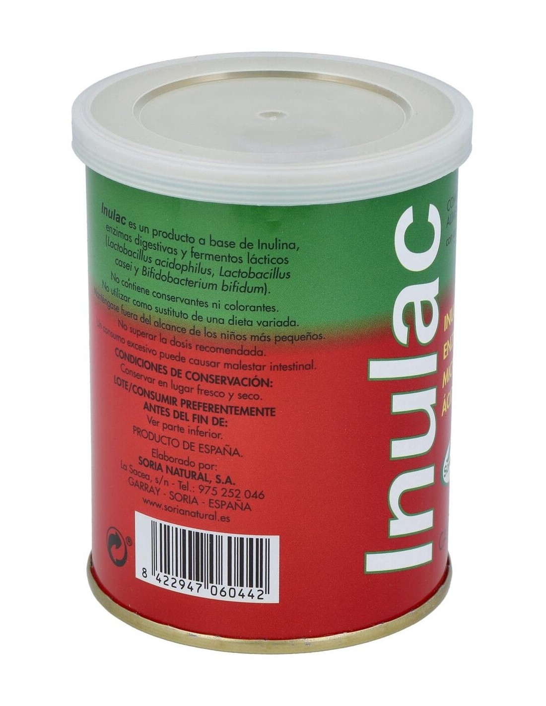 SORIA NATURALInulac Bote es un producto a base de inulina, enzimas digestivas y fermentos lácticos (Lactobacillus acidopfilus, Lactobacillus casei y Bifidobacteriu