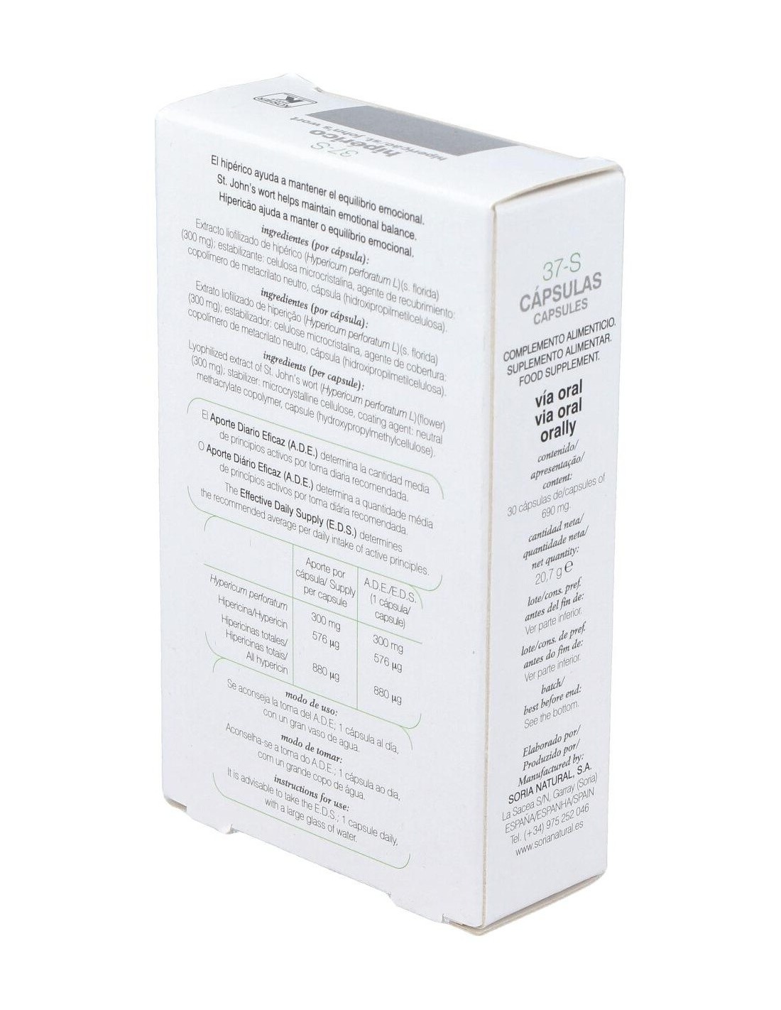 El Cap.S-37 Hiperico Xxi 30Cap. de Soria Natural es un complemento alimenticio diseñado para personas que buscan apoyar su bienestar diario mediante ingredientes naturales. Este producto está formulado para integrarse fácilmente en rutinas de cuidado personal, aportando una opción basada en extractos vegetales.
