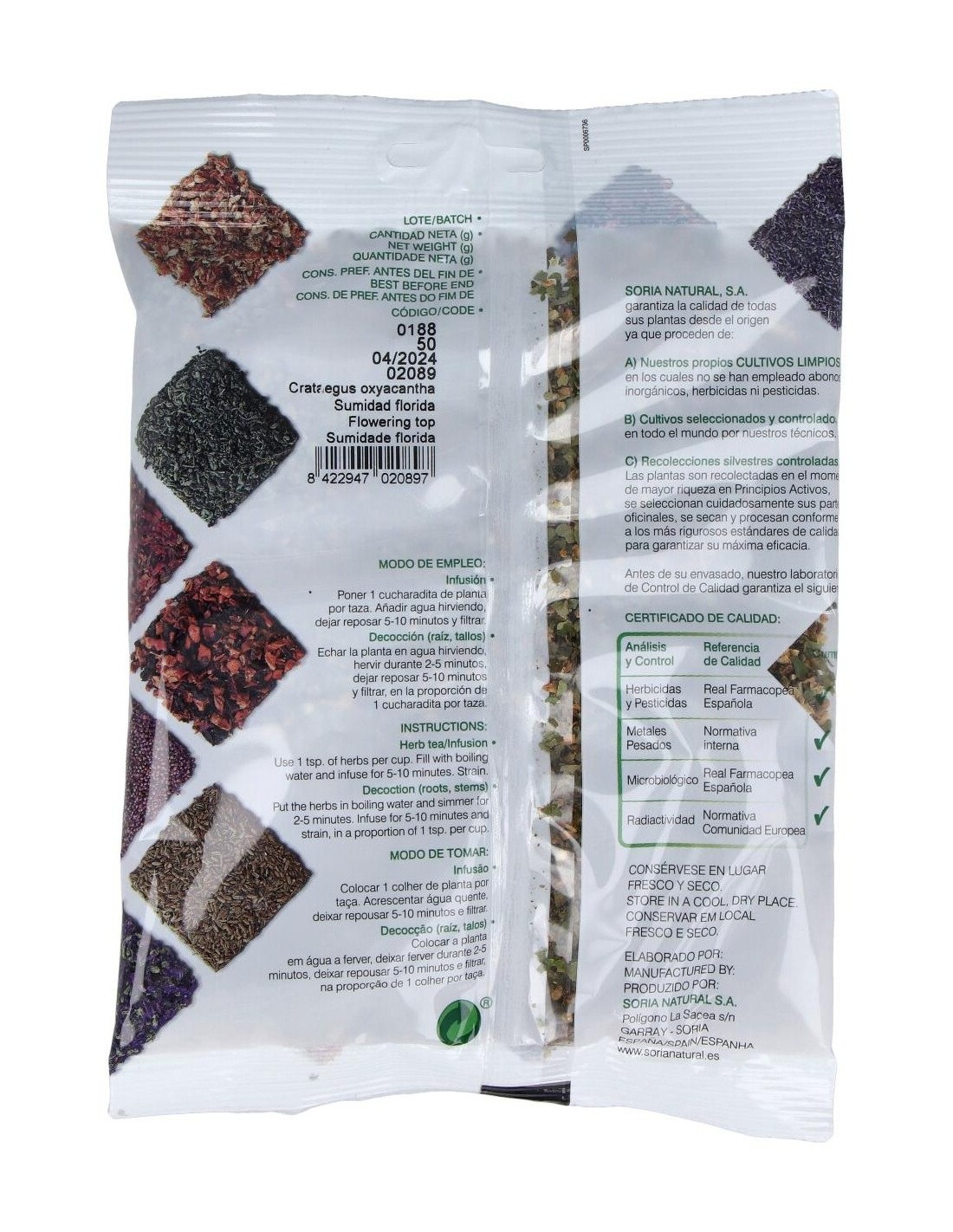 SORIA NATURALSoria Natural Espino Blanco Bolsa 50g está indicado para ayudar a cuidar el sistema cardiovascular. Ayuda a relajar el sistema nervioso central y tiene también efectos sobre el sistema cardiovascular.