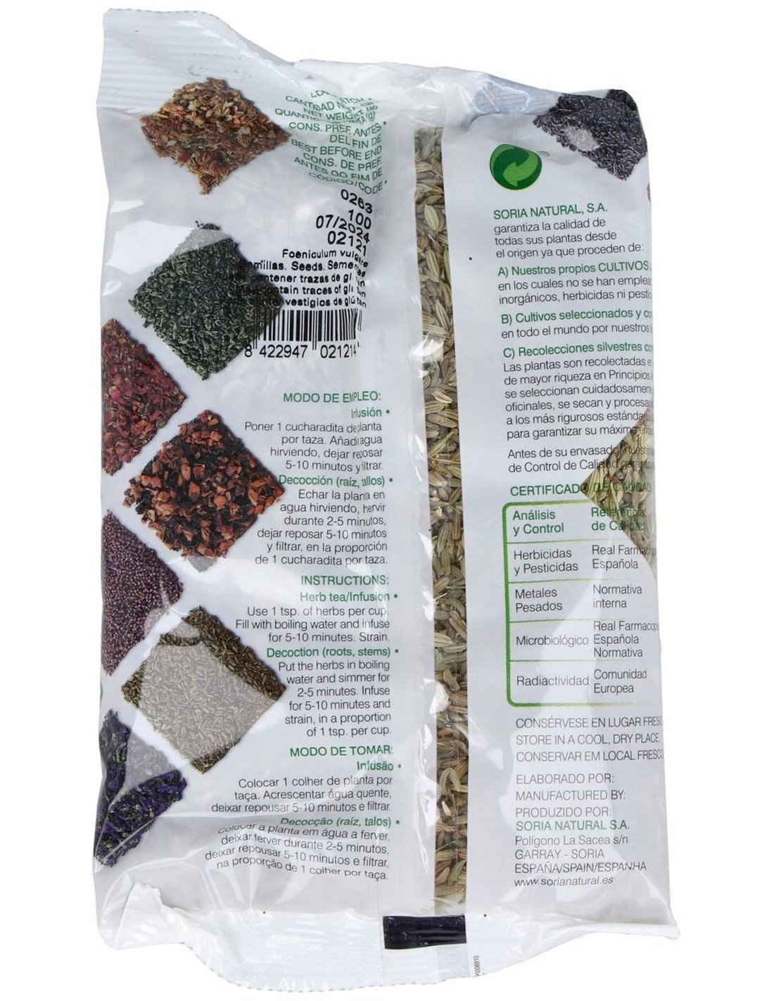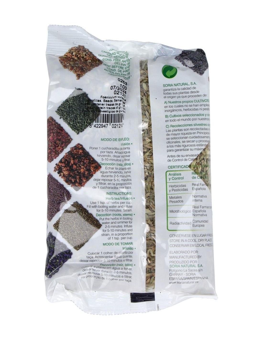 SORIA NATURALEl Hinojo Semillas Bolsa 100Gr. de Soria Natural es un producto natural para consumidores interesados en ingredientes saludables. Facilita la incorporación de semillas de hinojo en la dieta gracias a su presentación práctica y calidad garantizada.