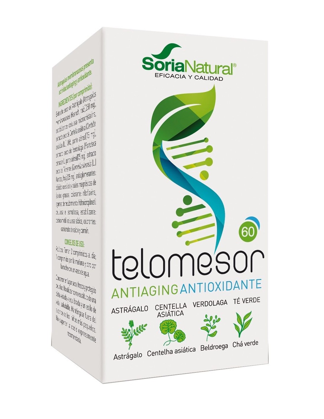 Telomesor de Soria Natural es un complemento alimenticio recomendado para la prevención del envejecimiento (protege los telómeros y aumenta la actividad de la enzima telomerasa). Esta recomendado para prevenir enfermedades relacionadas con el envejecimiento físico como:
