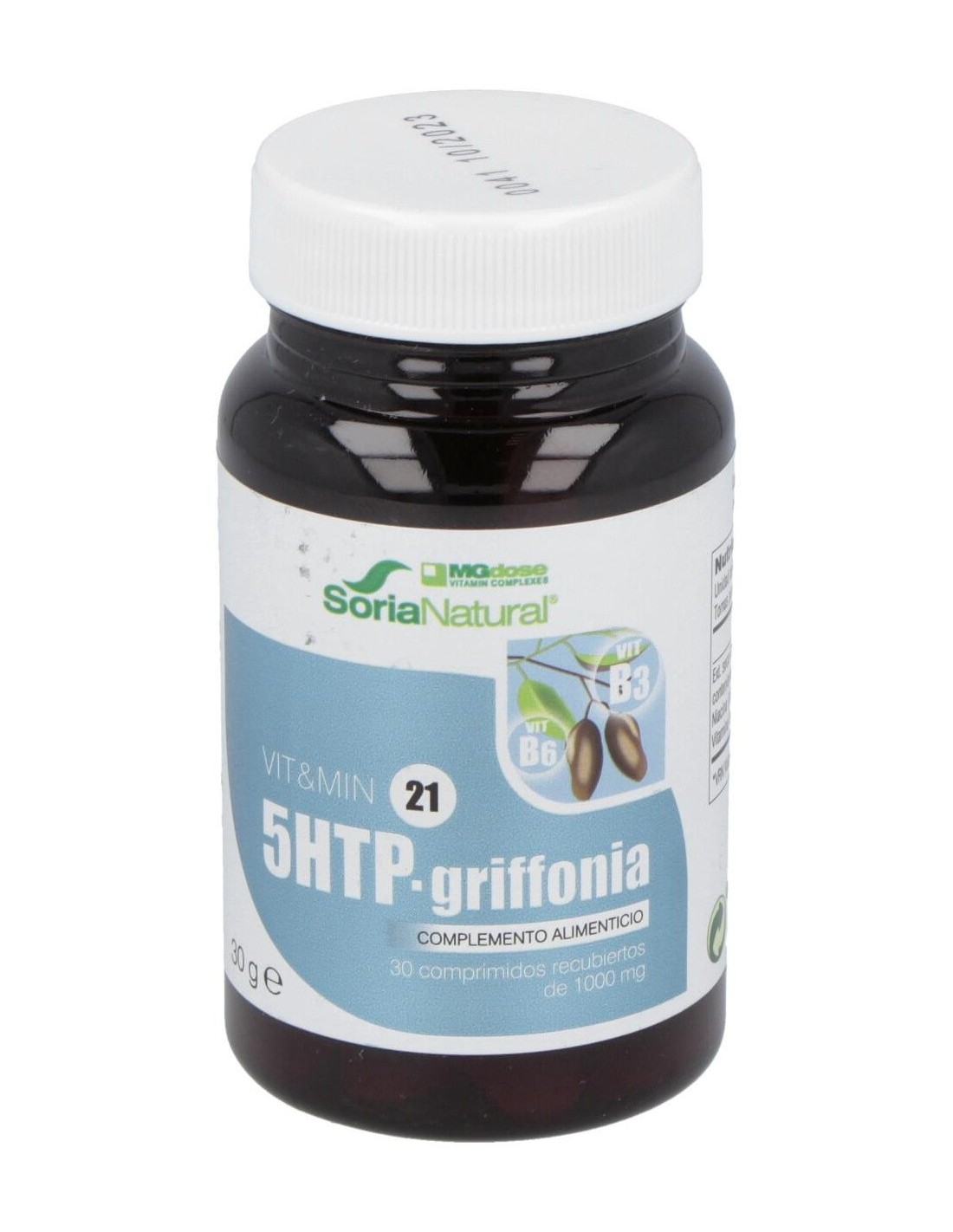 SORIA NATURALEl C-21 5Htp-Griffonia+B3+B6 30Comp. de Mgdose es un suplemento diseñado para adultos que busca apoyar el bienestar emocional mediante una fórmula que combina extracto de Griffonia con vitaminas B3 y B6.