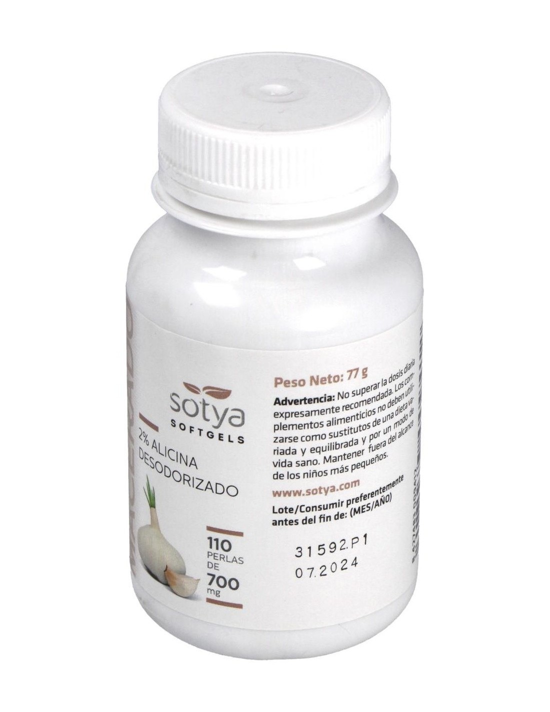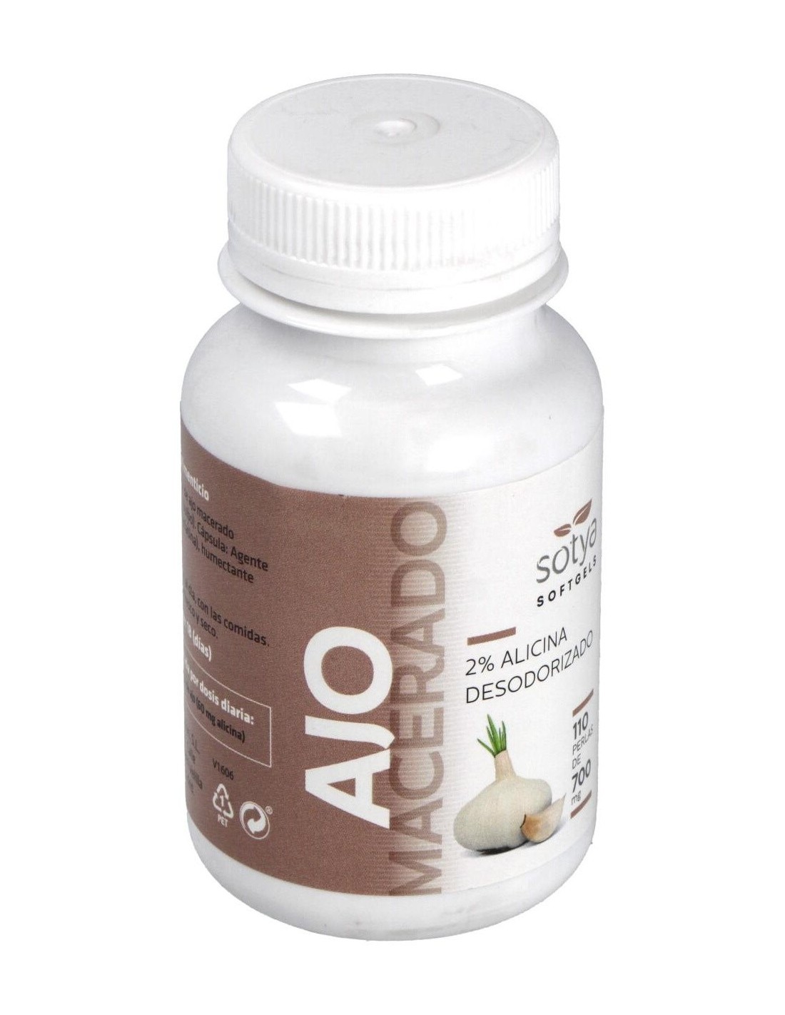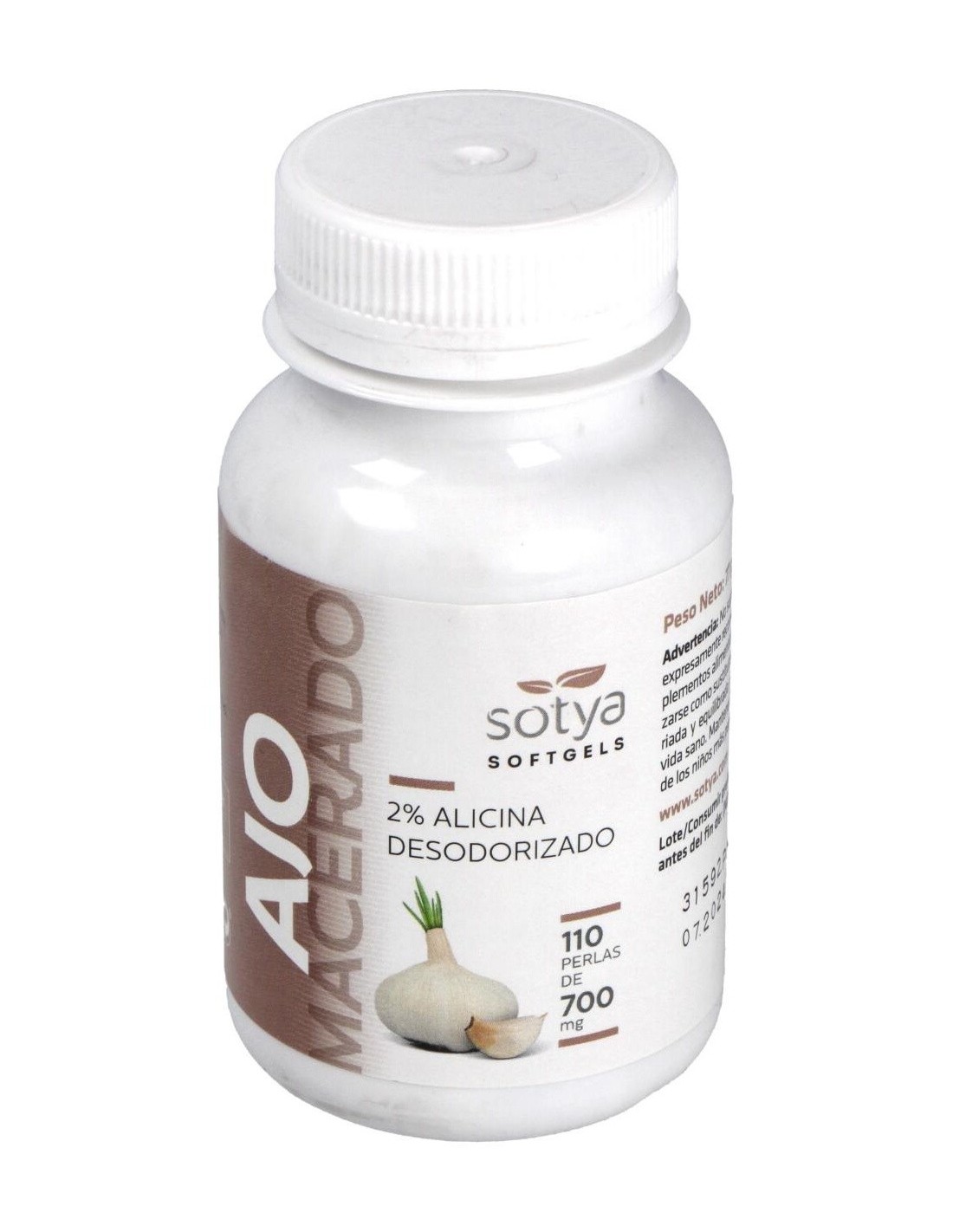 El Ajo Macerado 700Mg Perlas 110U de Sotya ofrece una forma práctica y dosificada de consumir ajo, adaptándose a diferentes estilos de vida y necesidades diarias.