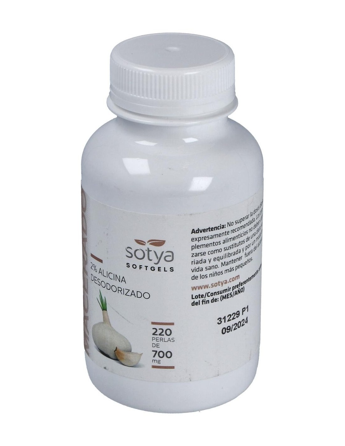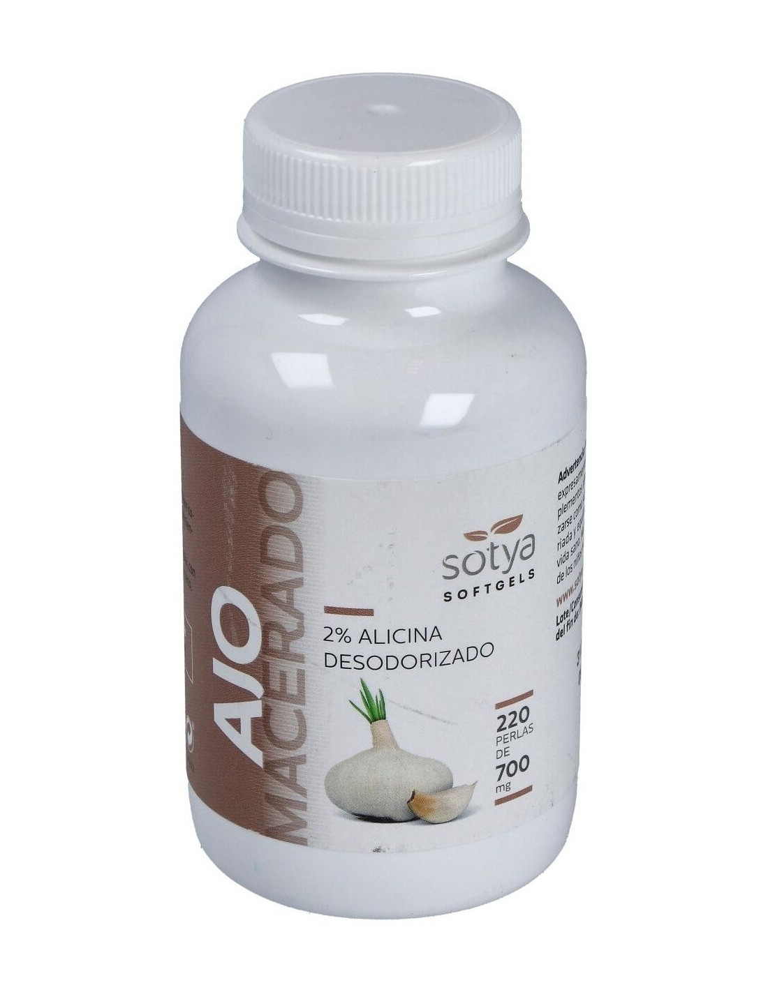 El Ajo Macerado 700Mg Perlas 220U de Sotya es un suplemento diseñado para personas que buscan incorporar ajo de forma práctica en su rutina diaria. Su formato en perlas facilita la dosificación y la ingesta, adaptándose a quienes prefieren evitar el sabor fuerte del ajo natural.