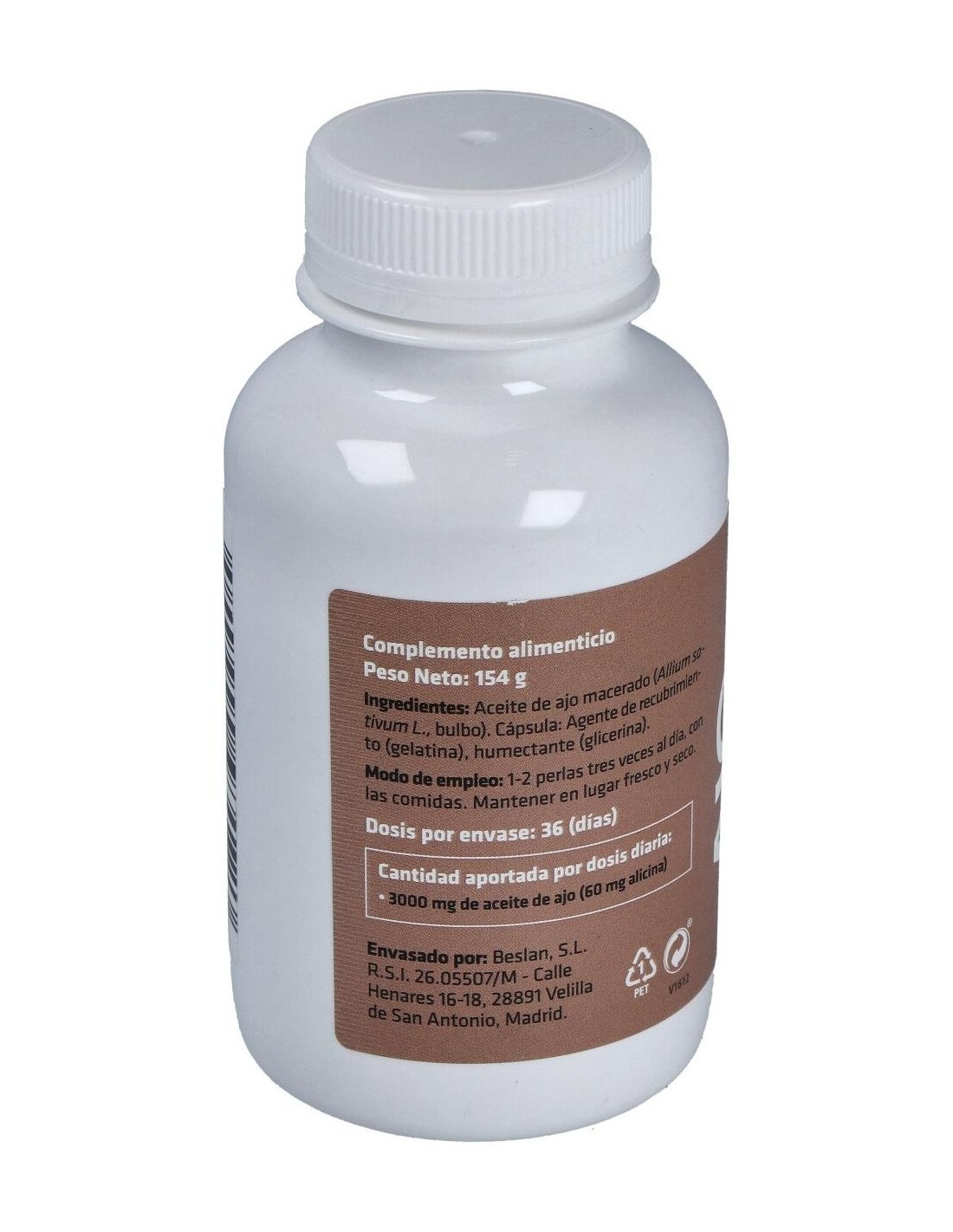 - Cada perla contiene 700 mg de ajo macerado, proporcionando una concentración constante en cada dosis.