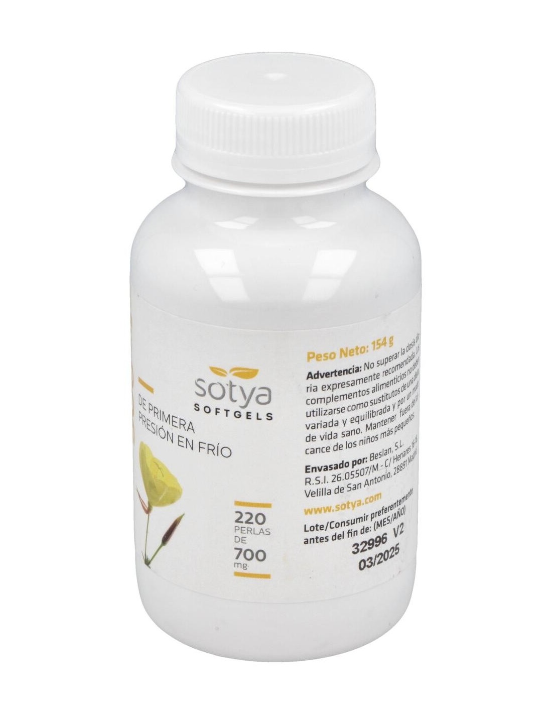 SOTYAOnagra 700Mg Perlas 220U de Sotya es un suplemento natural para personas que buscan apoyar el bienestar hormonal y la salud de la piel, formulado con aceite de onagra en perlas de fácil consumo.
