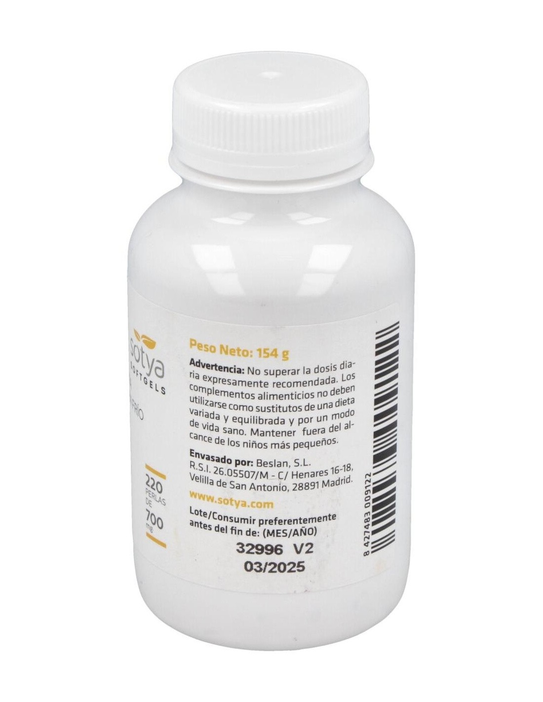 Onagra 700Mg Perlas 220U de Sotya es un suplemento diseñado para personas que buscan complementar su alimentación diaria con un aporte específico de ácidos grasos esenciales. Este producto es adecuado para quienes desean incorporar una fuente concentrada de onagra en su rutina de bienestar.