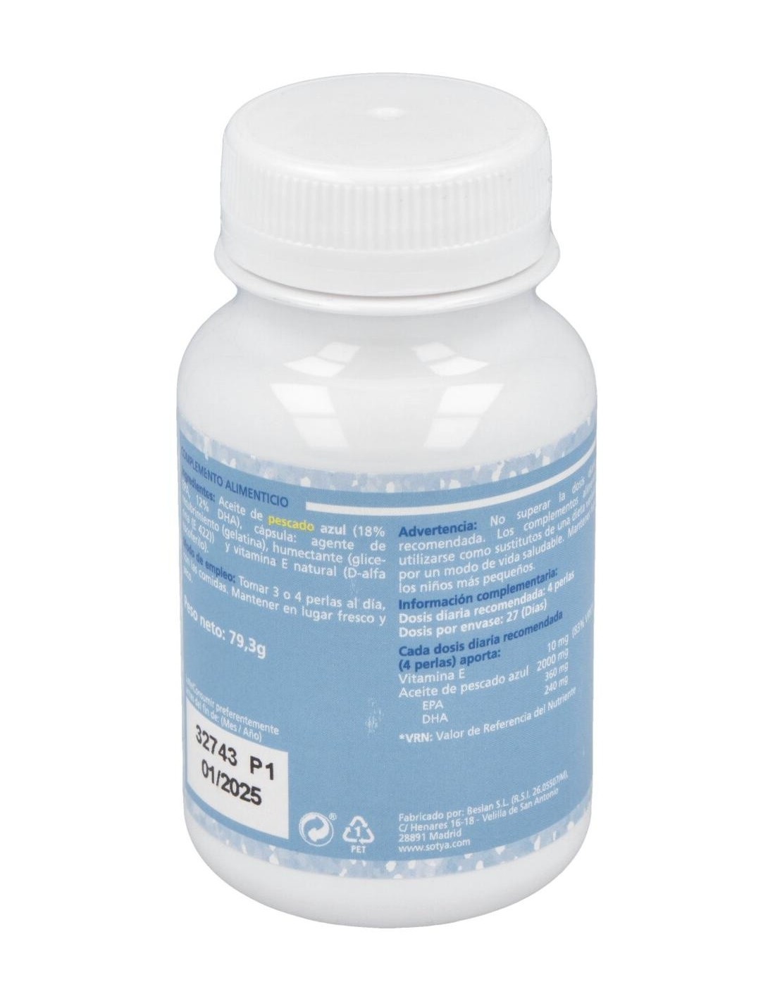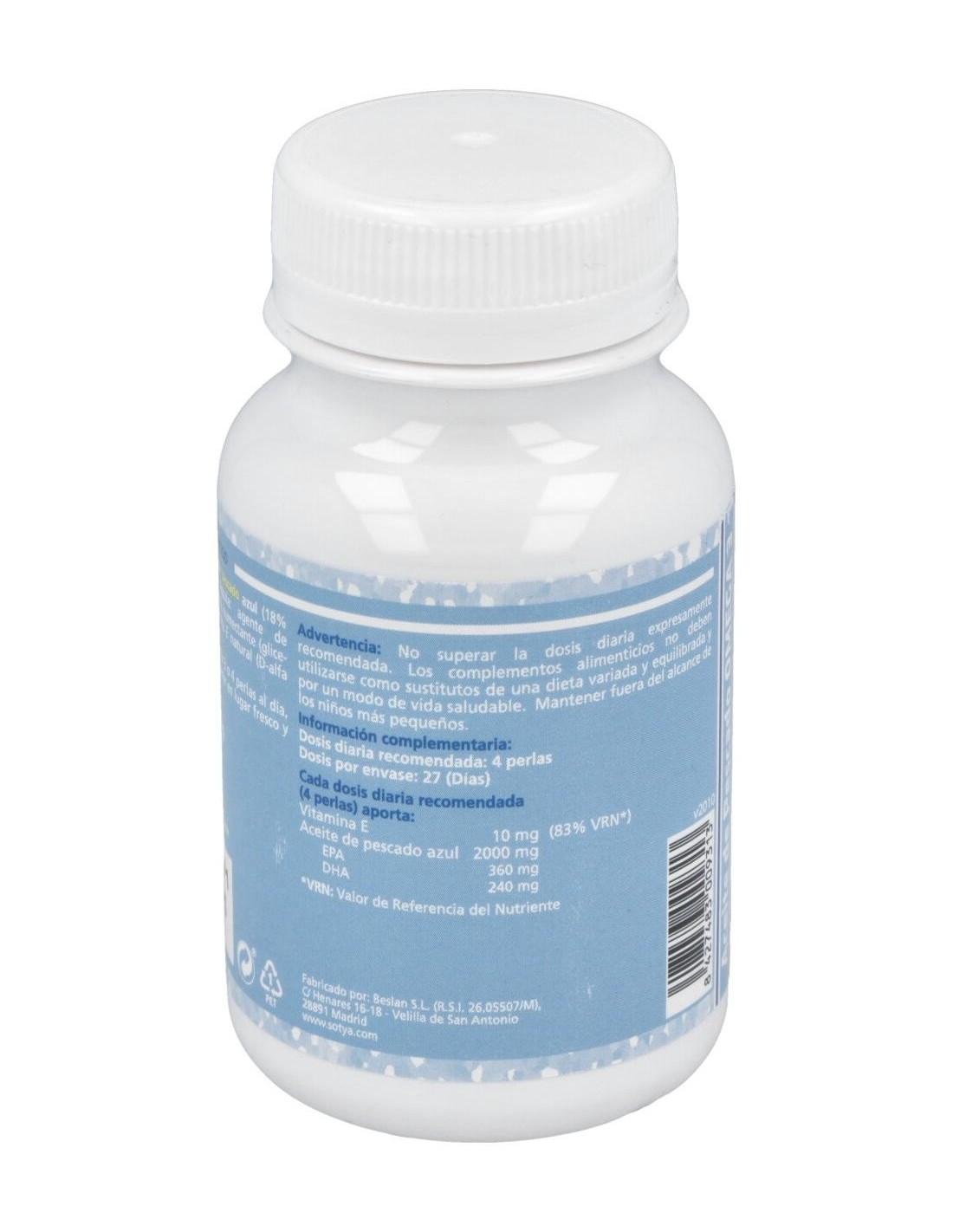 - Cada perla contiene 721 mg de aceite de pescado, proporcionando una fuente concentrada de ácidos grasos omega 3.