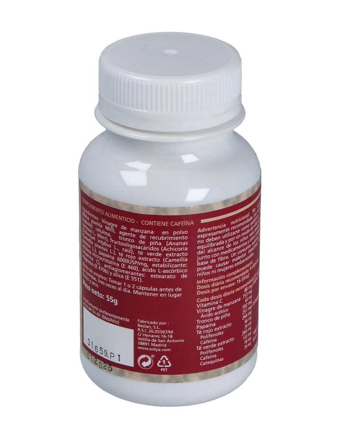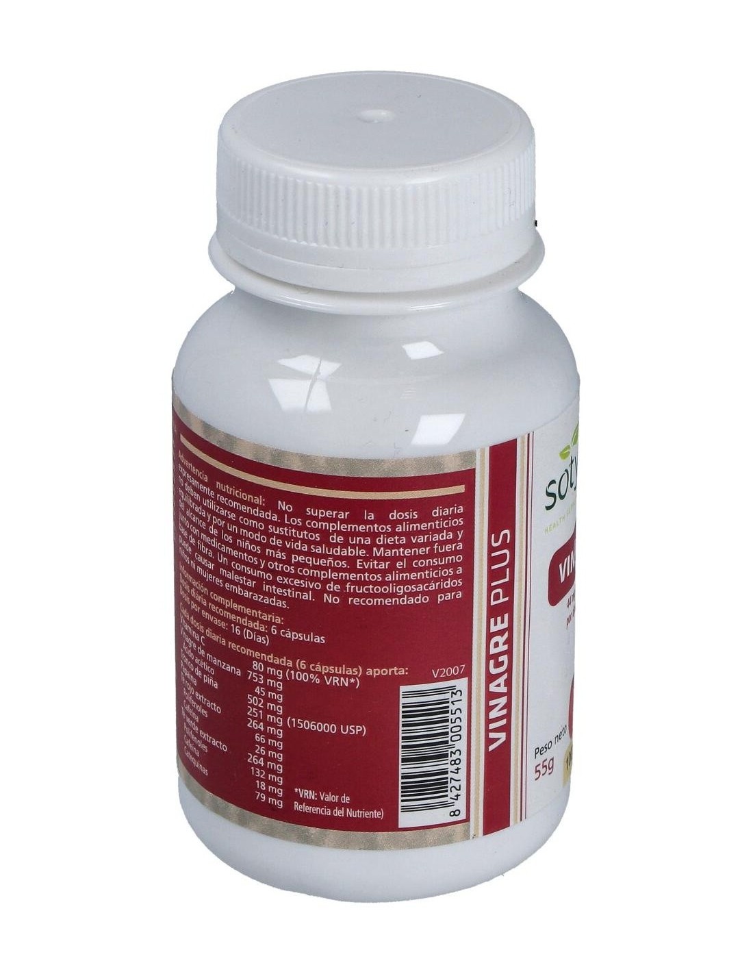- Cada cápsula contiene 550 mg de vinagre, facilitando una ingesta controlada y sencilla.